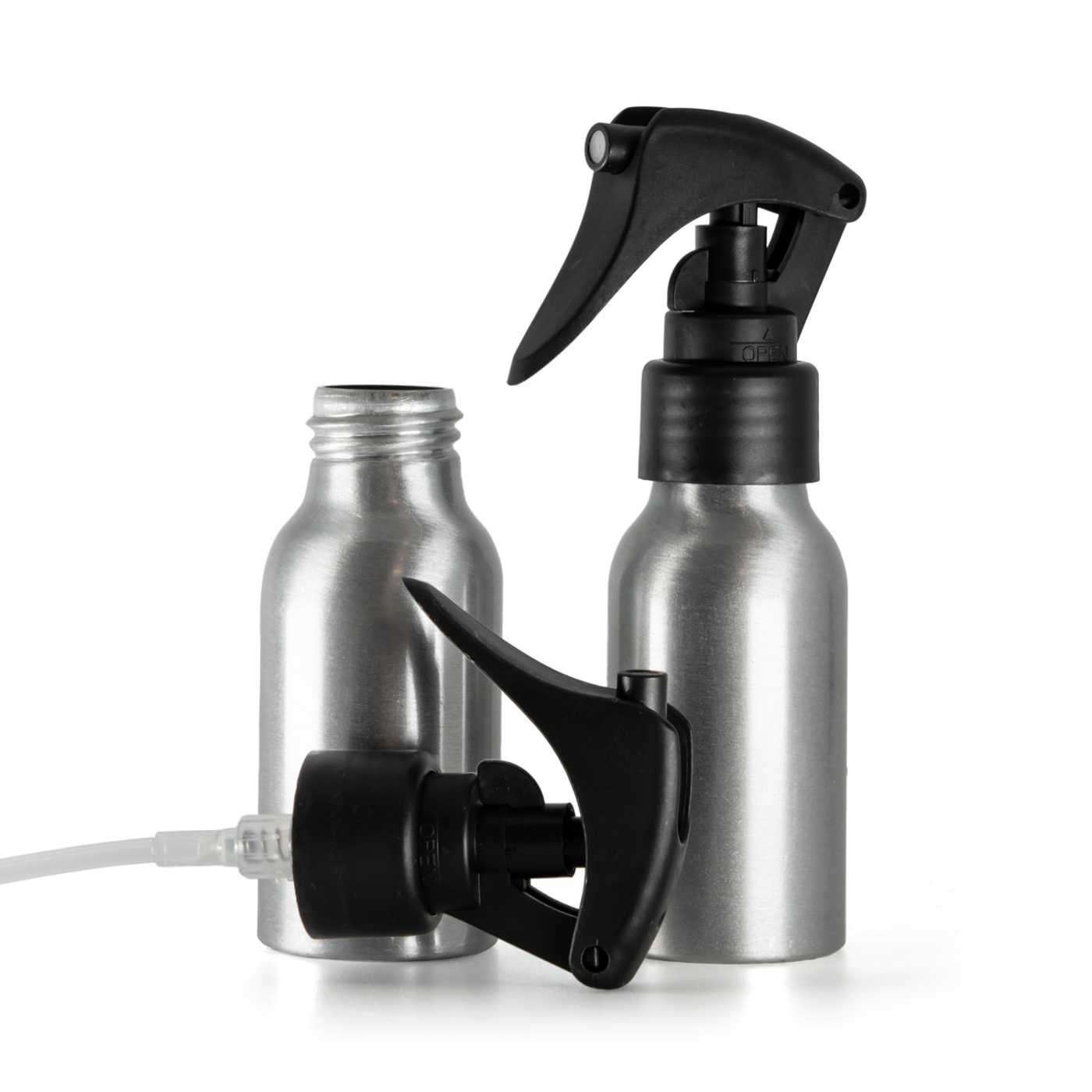 Aluminiumflasche, Mini-Trigger-Spray, mattschwarz, glatter Kragen, 50 ml