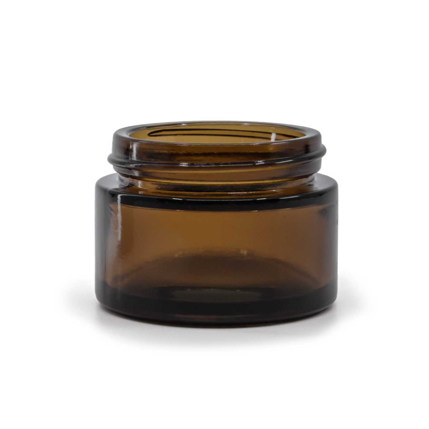 Elegantes dunkelbraunes, dickes Glasgefäß, geeignet für die Aufbewahrung von Cremes, Salben, Emulsionen oder Seren. Es ist auch für die Herstellung von Kerzen geeignet.