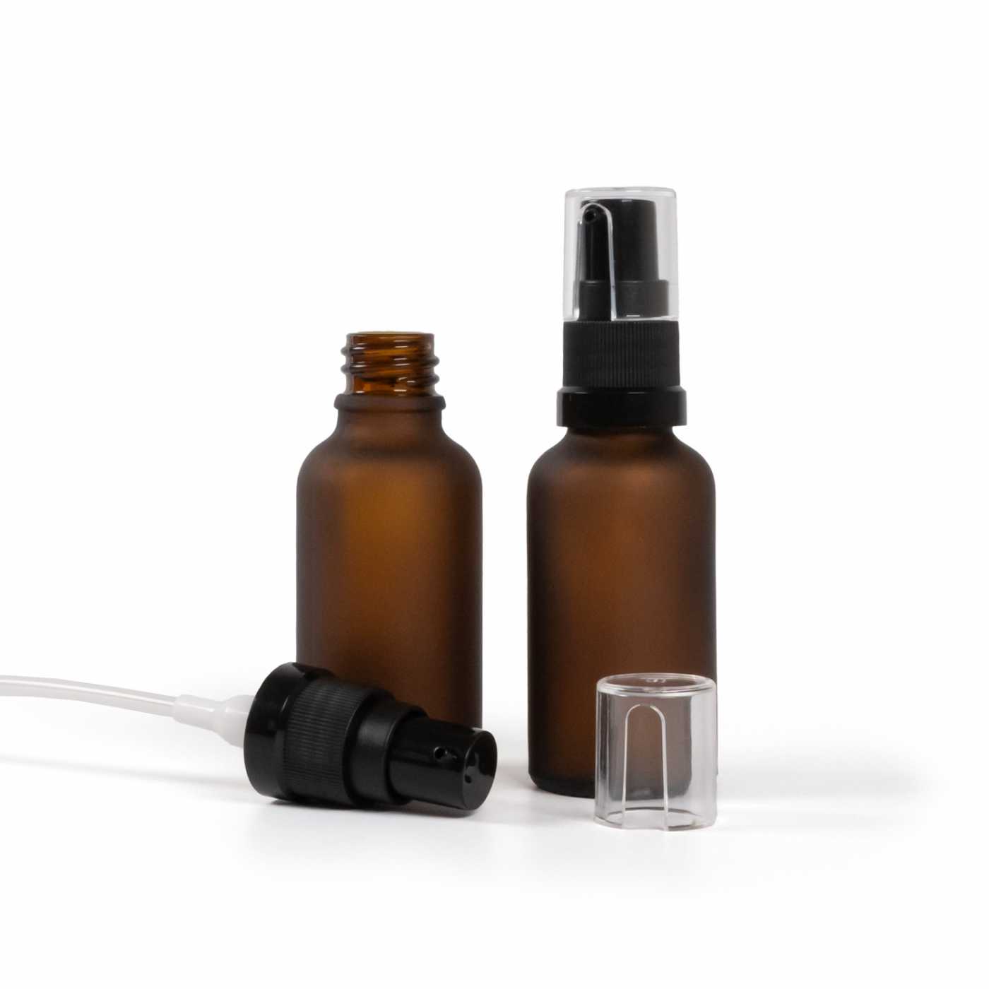Braunglasflasche, mattiert, Ölpumpe, 30 ml