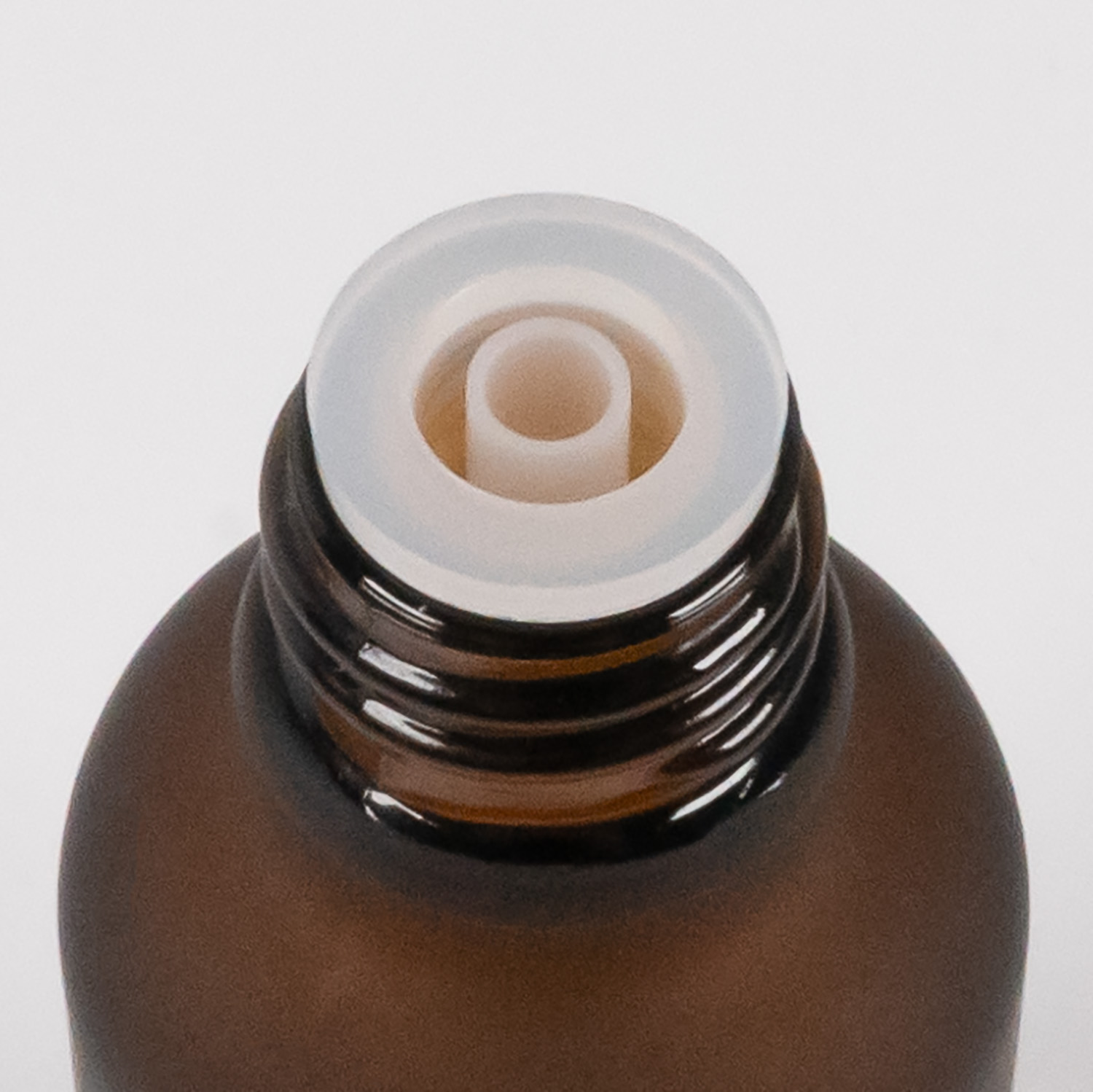 Kunststofftropfer für Glasfläschchen, 18 mm, lang. Wird in denHals der Flasche gesteckt.