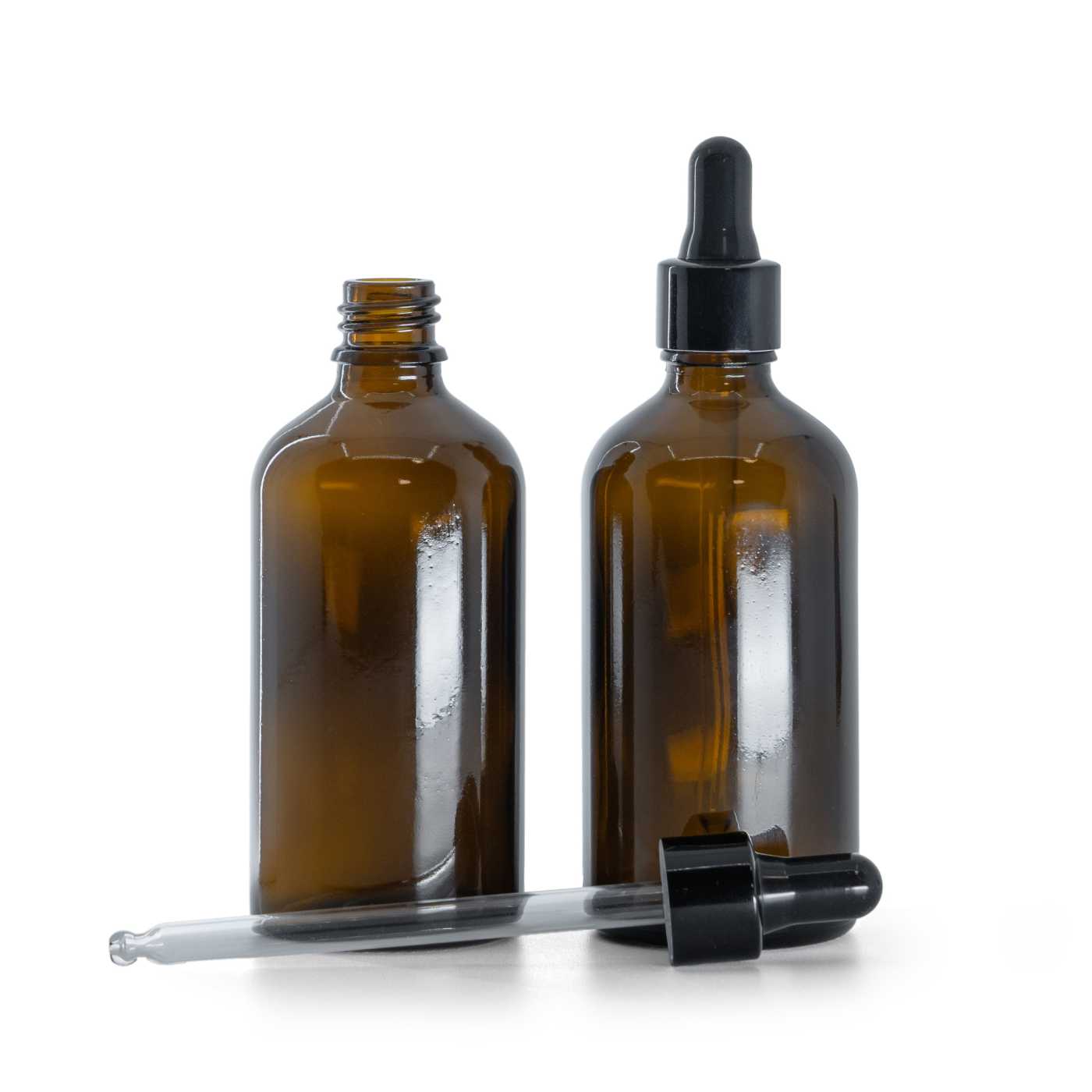 Braunglasflasche, schwarz glänzender Tropfenzähler, 100 ml