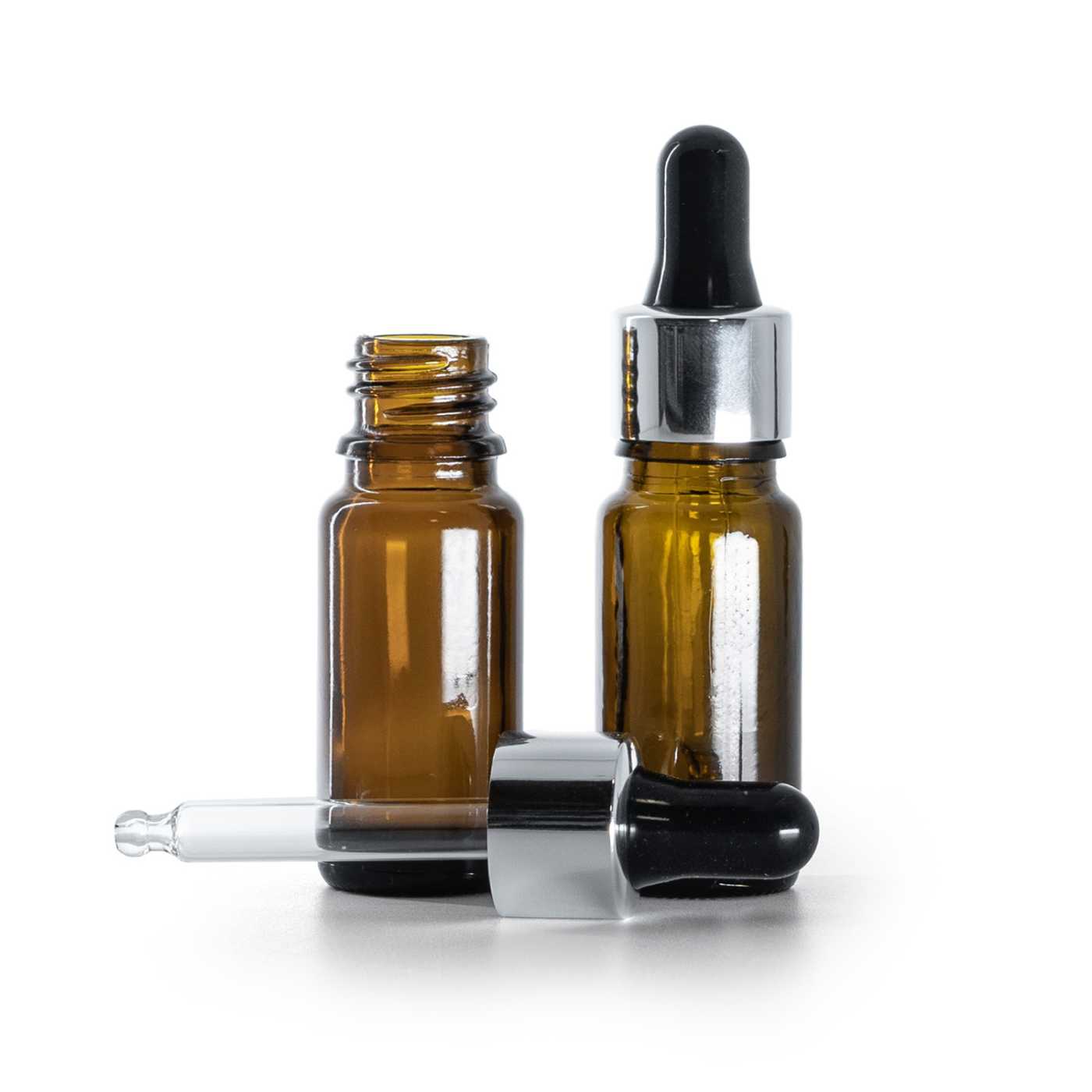 Das Glasfläschchen, hoch mit schwarz-silberner Pipette ist ein praktisches und professionell aussehendes Behältnis für die sichere Verpackung von flüssigen und niedrigviskosen Produkten, bei denen es auf saubere Dosierung, Materialstabilität und zuverlässigen Verschluss ankommt. Das dunkle Glas hilft natürlich, empfindliche Inhaltsstoffe vor Licht (UV) zu schützen, was besonders bei Extrakten, Ölen und Wirkstoffen geschätzt wird. Die Verpackung ist lebensmitteltauglich und eignet sich daher auch für Produkte, die für den internen Gebrauch bestimmt sind, vorausgesetzt, dass bei der Abfüllung auf Hygiene und Sauberkeit geachtet wird.
