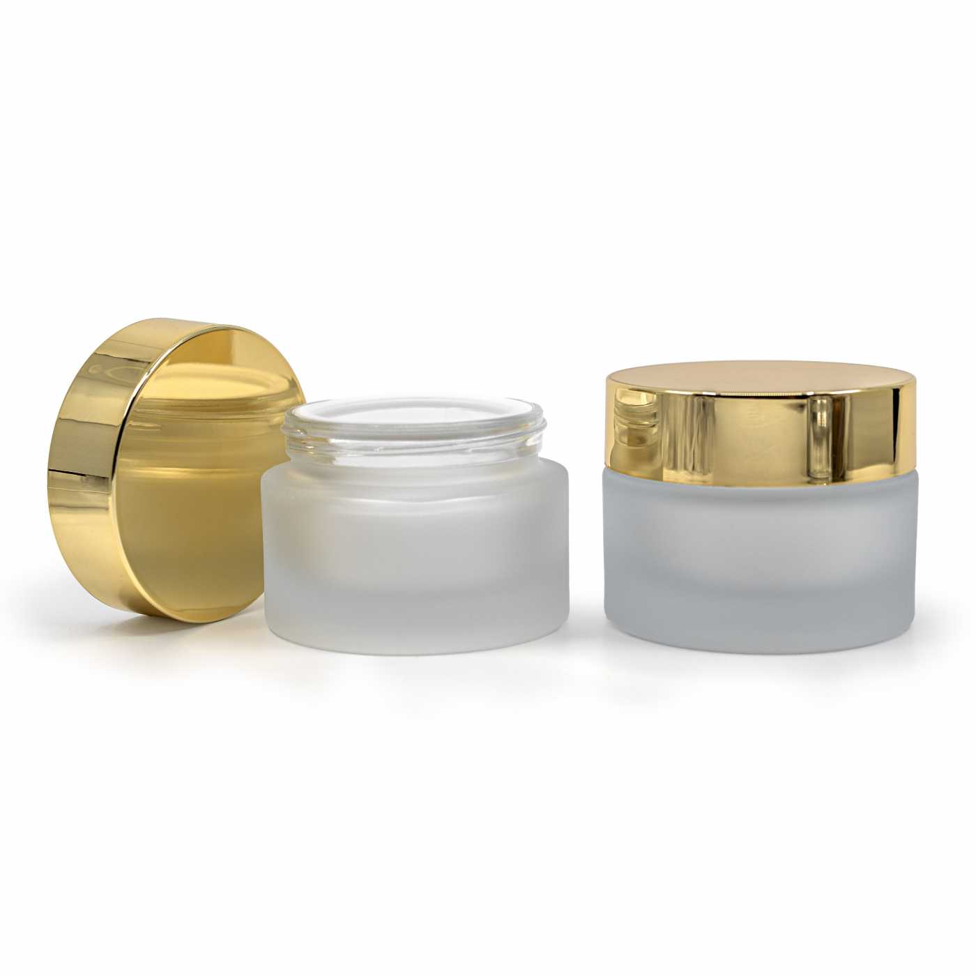 Dickes mattiertes Kosmetikglas, goldener Deckel und Dichtung, 50 ml