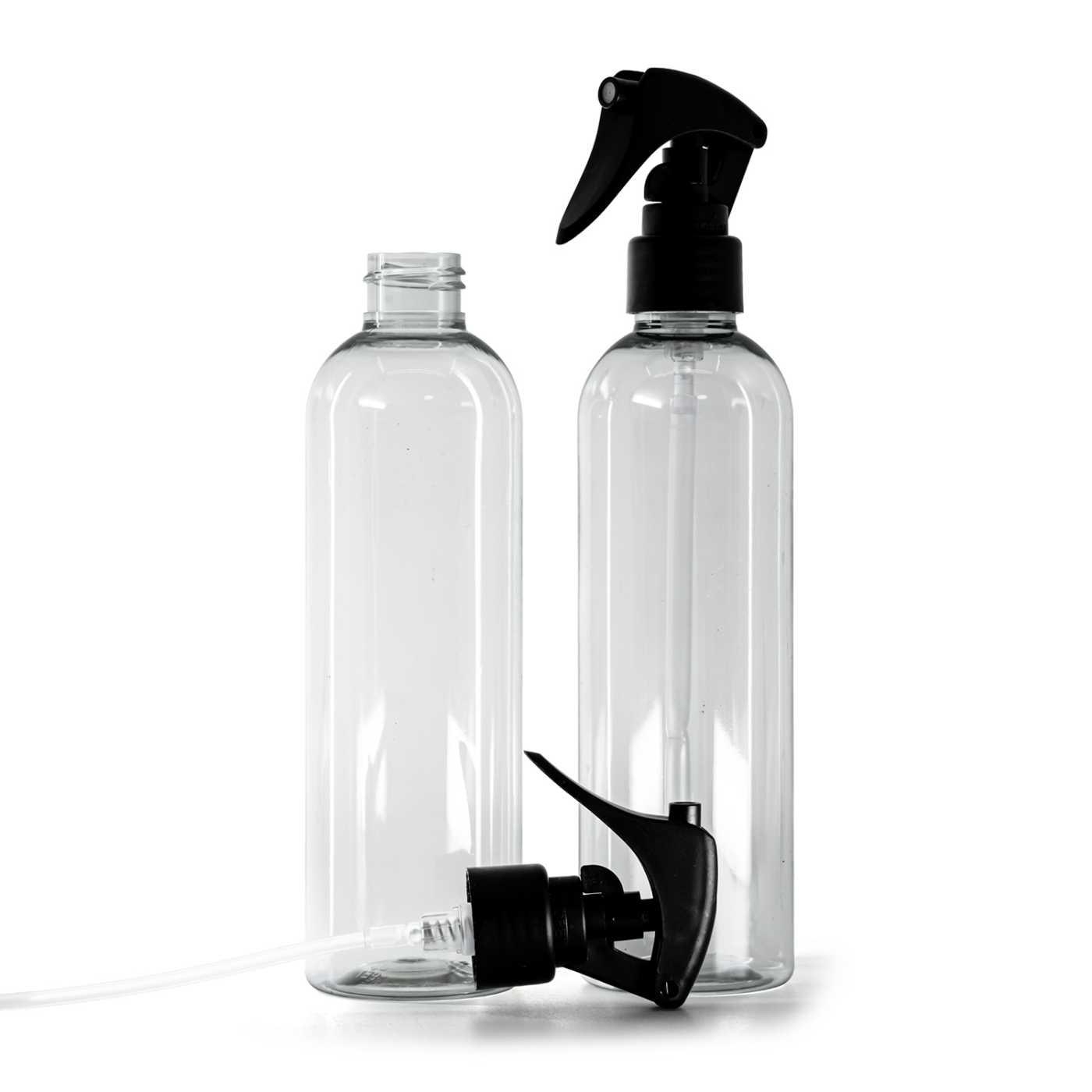 Flasche aus recyceltem Kunststoff, Mini-Trigger-Spray, mattschwarz, glatter Kragen, 250 ml