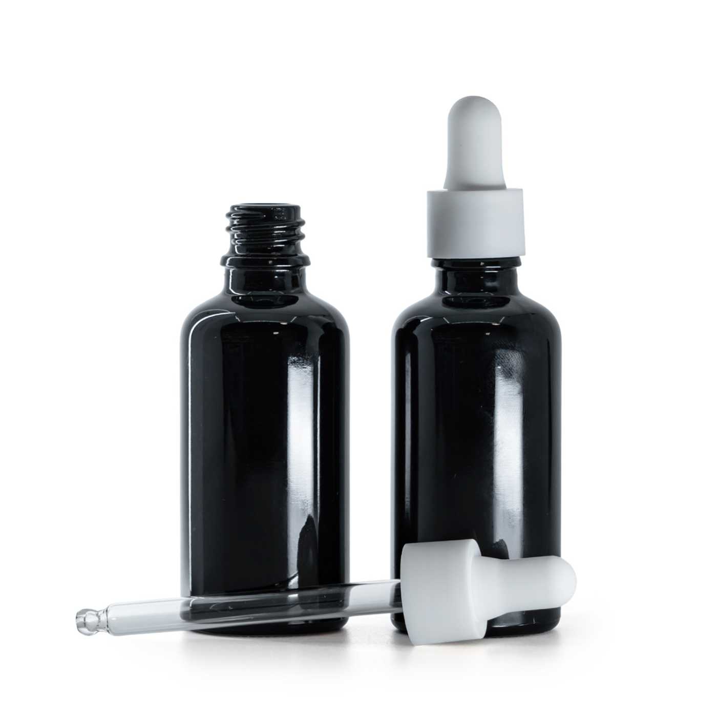 Die Glasflasche, das so genannte Fläschchen, ist aus hochwertigem schwarzem Glas mit glänzender Oberfläche gefertigt. Diese sorgt dafür, dass kein Licht in die Flasche eindringt und bietet somit Schutz vor UVA- und UVB-Strahlen.