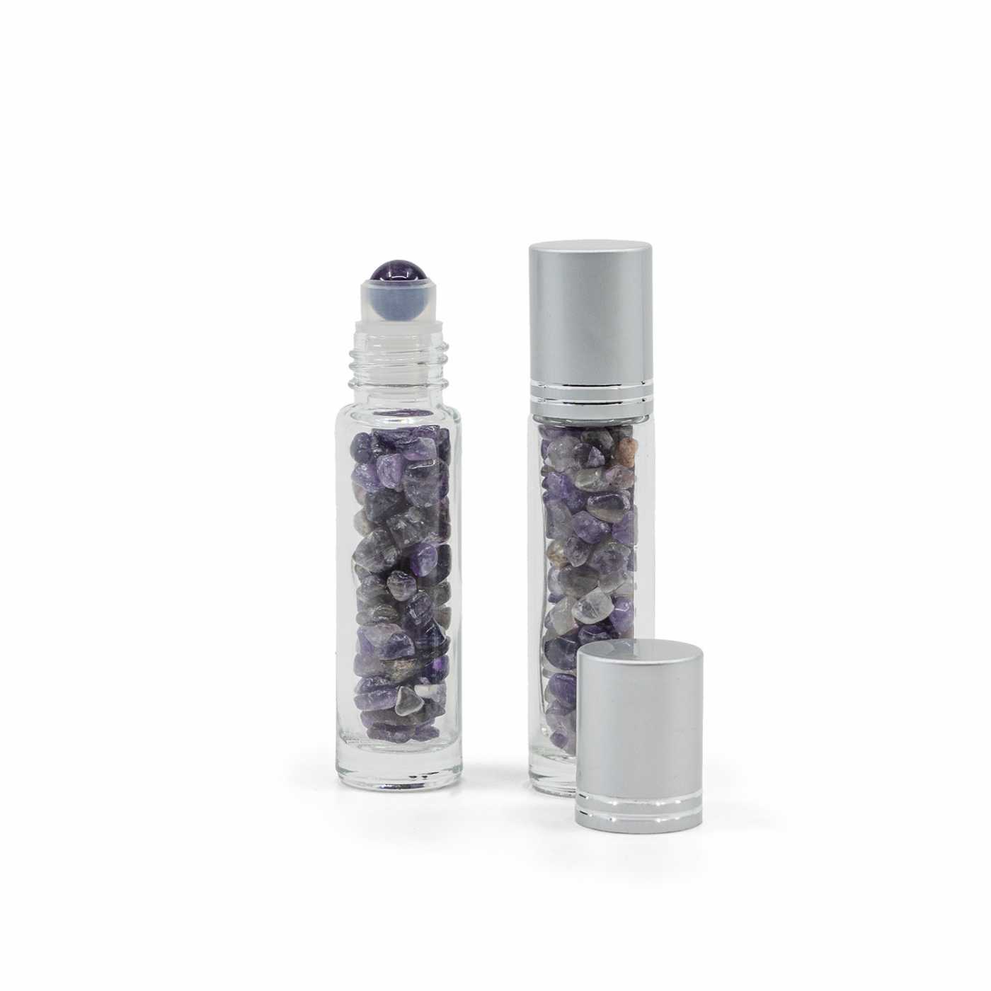 Glas-Roll-on mit Amethyst, Silberkappe, 10 ml
