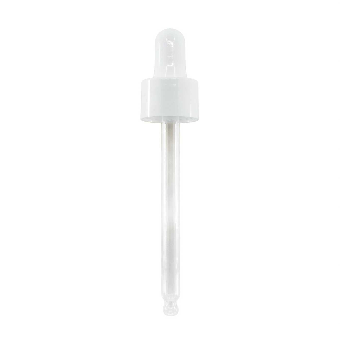 Glastropfer in weiß glänzender Farbe, geeignet für Flaschen mit Halsdurchmesser 18 mm und Volumen 50 ml.Länge der Pipette: 84 mmMaterial: Glas, Kunststoff
