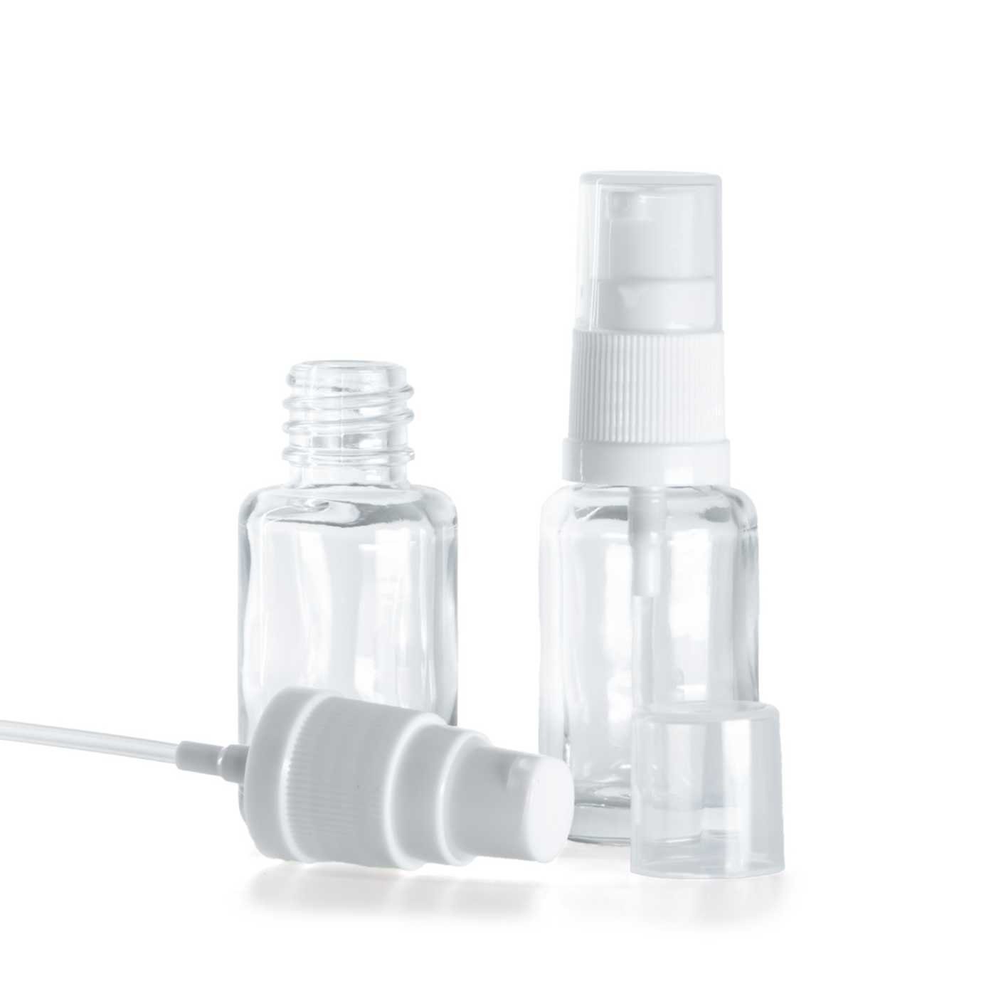 Klare Glasflasche rund mit weißem Spender 12 ml