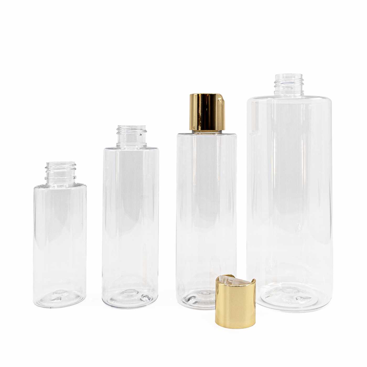 Transparente Kunststoffflasche, ideal für die Aufbewahrung einer Vielzahl von Flüssigkeiten, Ölen, Lotionen usw. Sie ist halbsteif, lässt sich aber zusammendrücken.