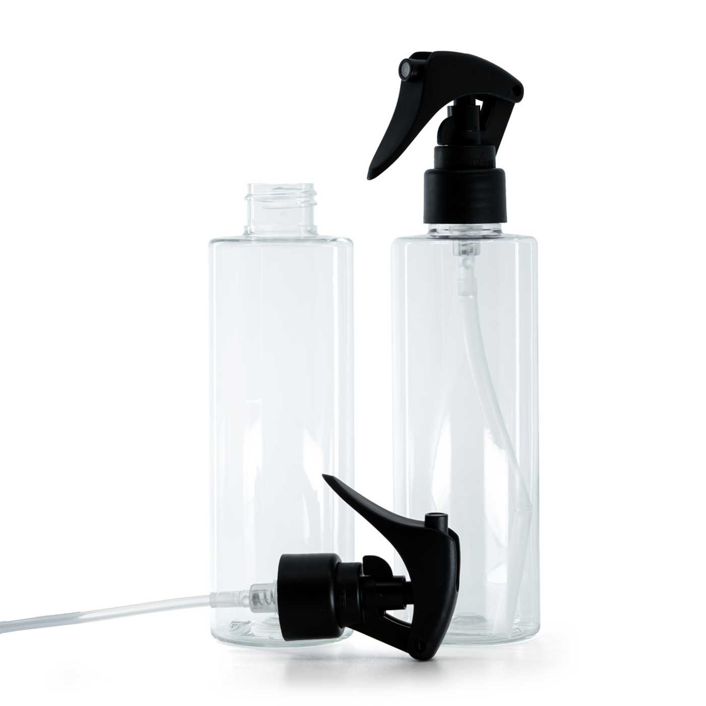 Klare Kunststoffflasche, Mini-Trigger-Spray, mattschwarz, glatter Kragen, 200 ml
