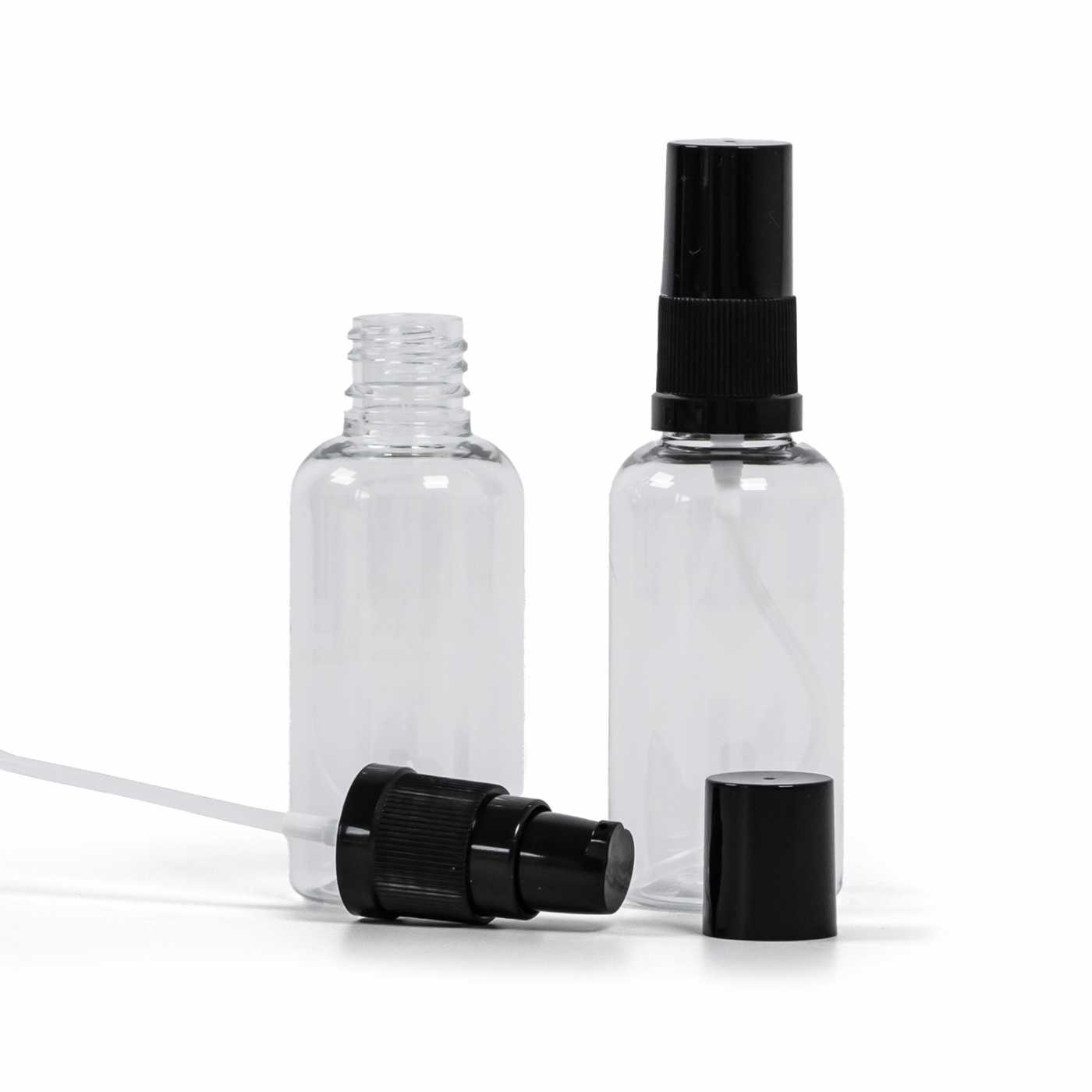 Klare Kunststoffflasche, schwarze Lotion-Pumpe mit schwarzem Überkappe, 50 ml