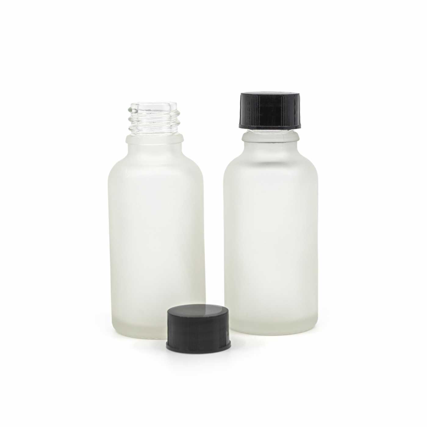 Klare Milchglasflasche, schwarzer Verschluss, 30 ml