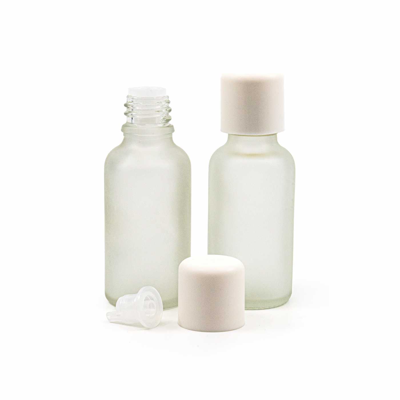 Klare Milchglasflasche, weiße Sicherheitskappe und Tropfer, 30 ml