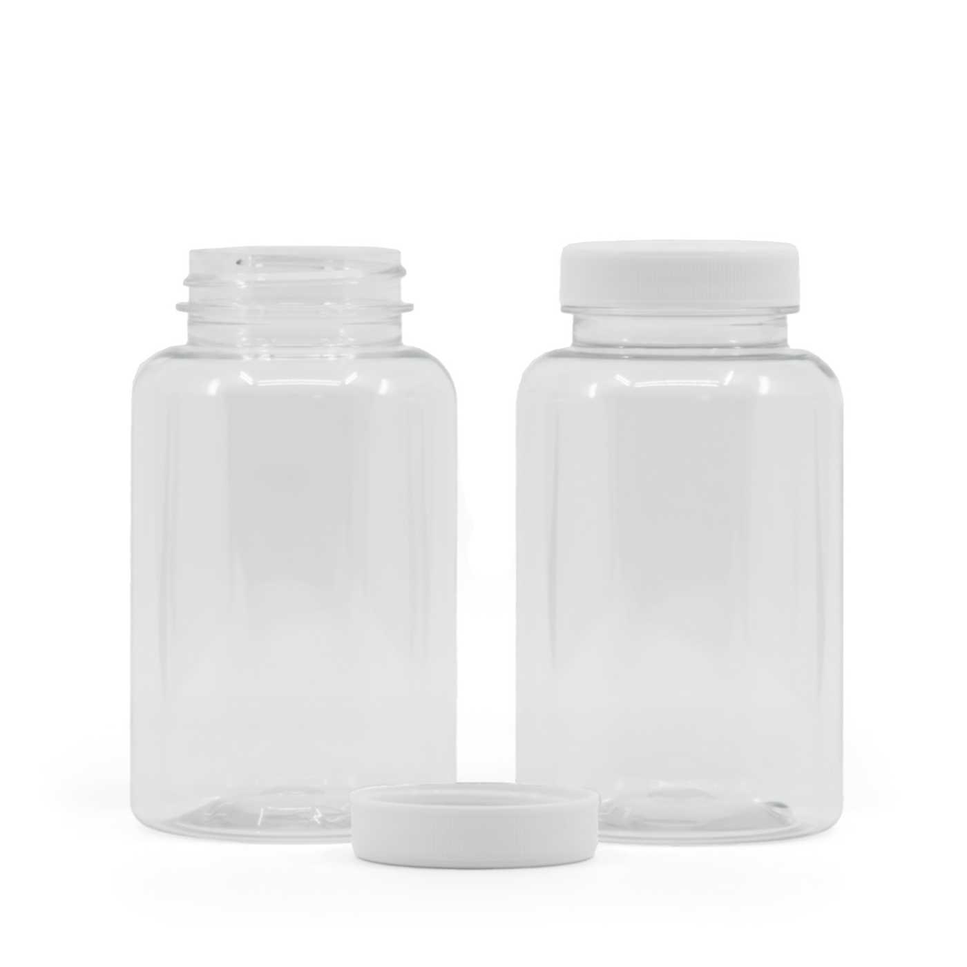 Klarer Kunststoff-Pillenbecher mit weißem Deckel, 250 ml