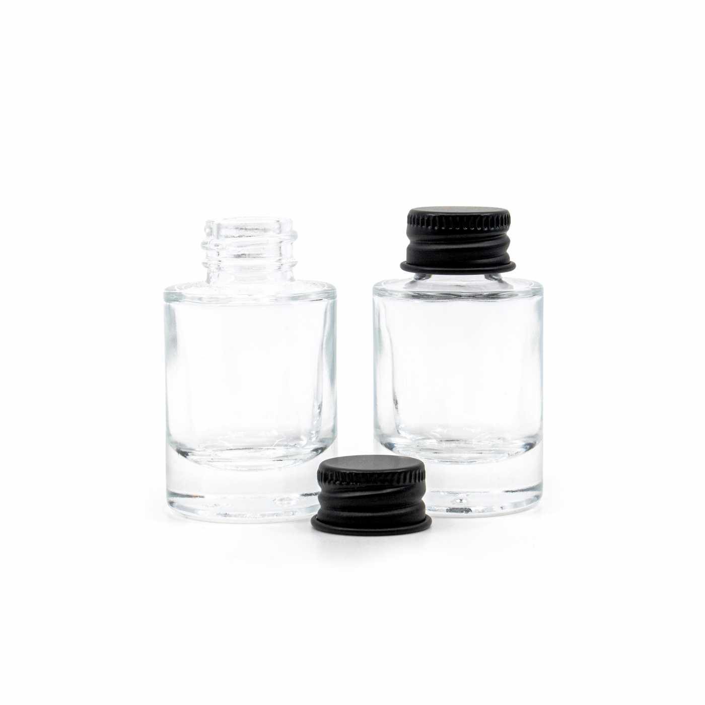 Klarglasflasche, dicker Boden, schwarzer Aluminiumdeckel, 10 ml
