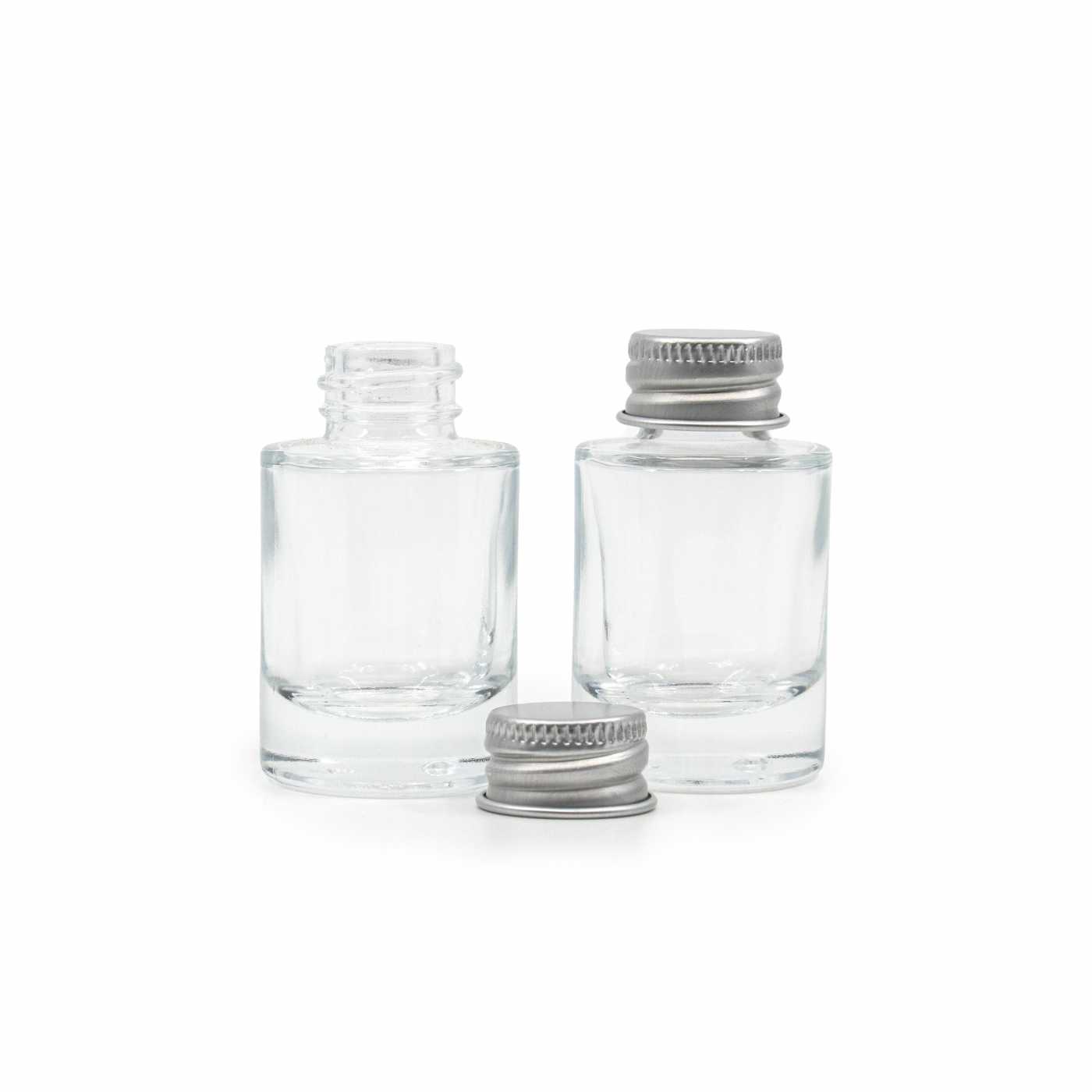 Klarglasflasche, dicker Boden, silberner Aluminiumdeckel, 10 ml