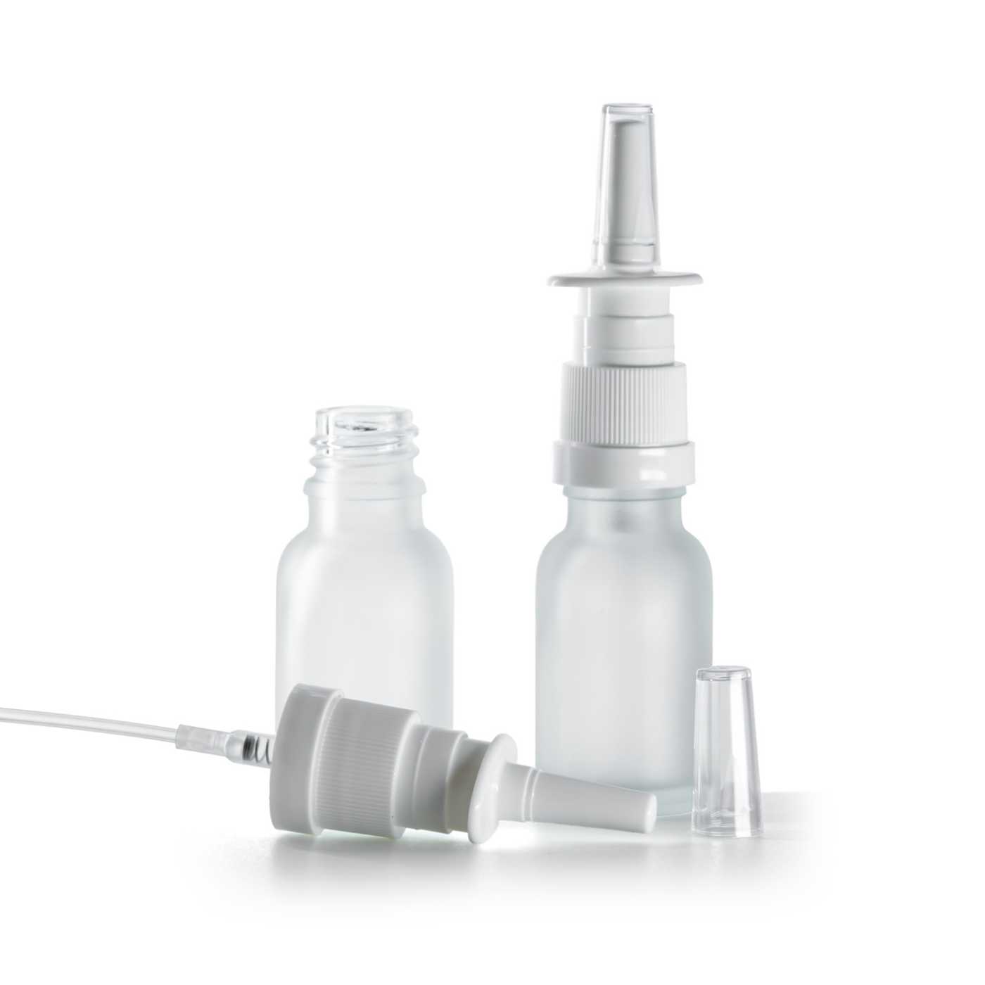 Klarglasflasche, mattiert, Nasensprühkopf, 15 ml