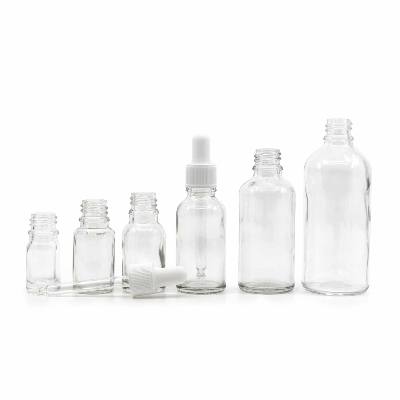 Klarglasflasche, mattweißer Tropfeinsatz, 15 ml