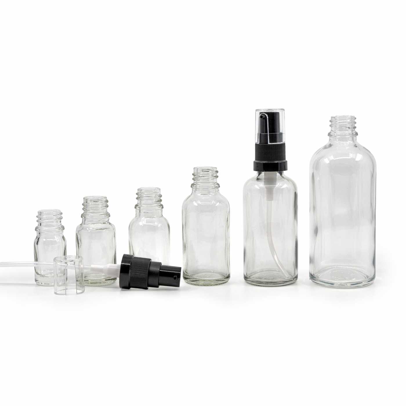 Die Glasflasche, das so genannte Fläschchen, ist aus dickem, transparentem Glas hergestellt. Volumen: 30 ml, Gesamtvolumen 35 mlFlaschenhöhe: 78,8 mmFlaschendurchmesser: 33 mmFlaschenhals: 18/410