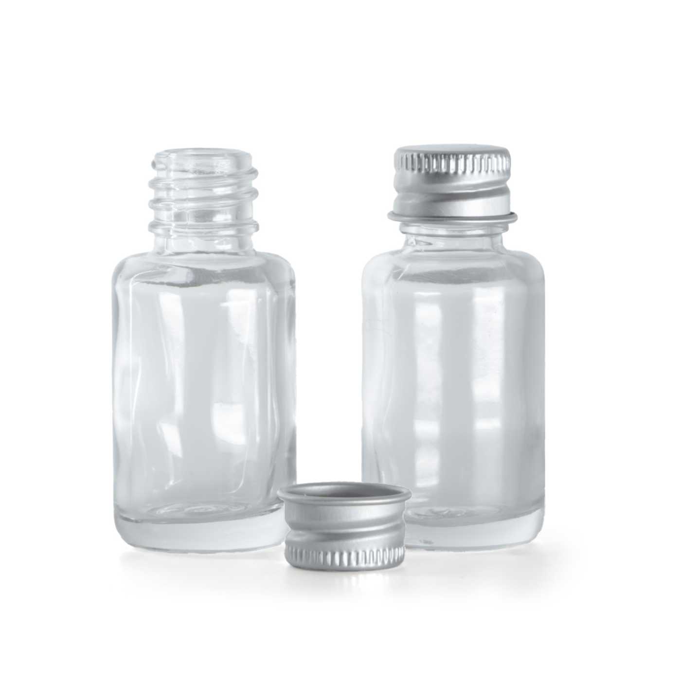 Aluminiumkappe in silberner Ausführung, geeignet für Flaschen mit einem Halsdurchmesser von 18 mm.