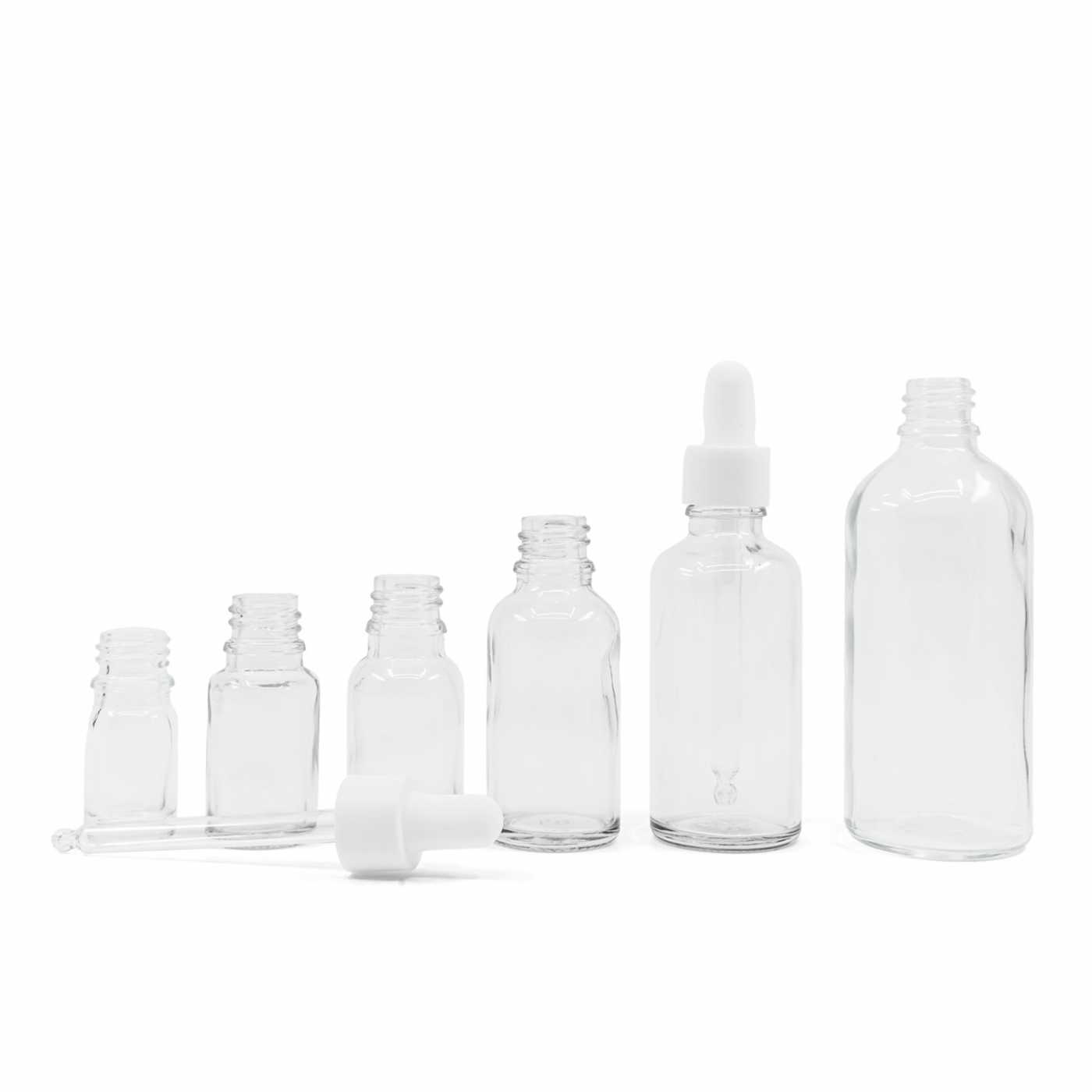 Klarglasflasche, weißer, mattierter Tropfer, 30 ml