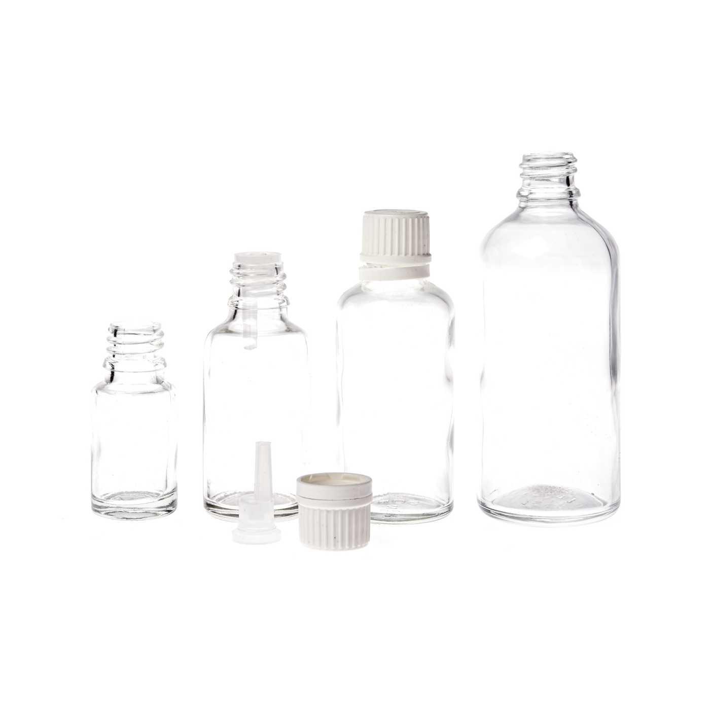 Die Glasflasche, das so genannte Fläschchen, besteht aus dickem, transparentem Glas. Sie wird zur Aufbewahrung von Flüssigkeiten verwendet. Volumen: 15 ml, Gesamtvolumen 18 mlFlaschenhöhe: 64 mmFlaschendurchmesser: 28,5 mmFlaschenhals: 18/410