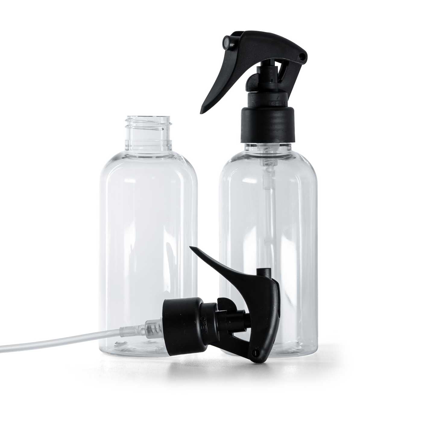 Vor dem Befüllen empfehlen wir, die Flasche und den Sprühmechanismus zu reinigen und zu desinfizieren und anschließend vollständig trocknen zu lassen. Beim Befüllen lassen Sie einen leichten Spielraum unterhalb des Flaschenhalses, damit das Saugrohr ausreichend Platz hat und es nicht zur Überfüllung kommt, die die Sprühfunktion beeinträchtigen könnte. Viskosere oder zu dickflüssige Zubereitungen können die Qualität des Sprühbildes verringern, daher ist es zweckmäßig, Formulierungen mit flüssigerer Konsistenz zu wählen. Nach dem Aufschrauben des Sprühkopfs empfehlen wir, die Dosierung mehrmals zu testen und gegebenenfalls die Viskosität oder Zusammensetzung der Zubereitung anzupassen.