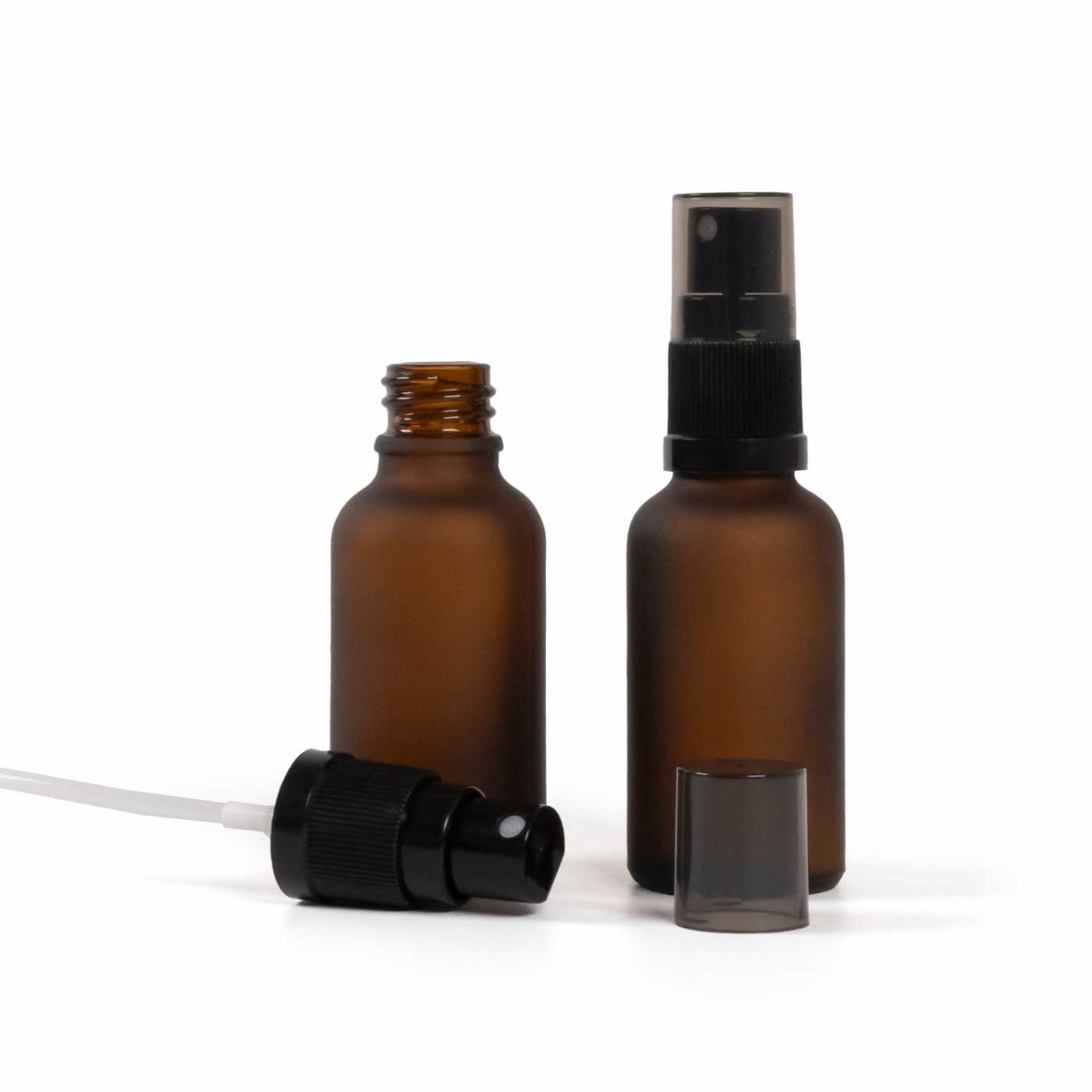 Matte Glasflasche Braun, schwarzer Feinnebelzerstäuber, Rauchkappe, 30 ml