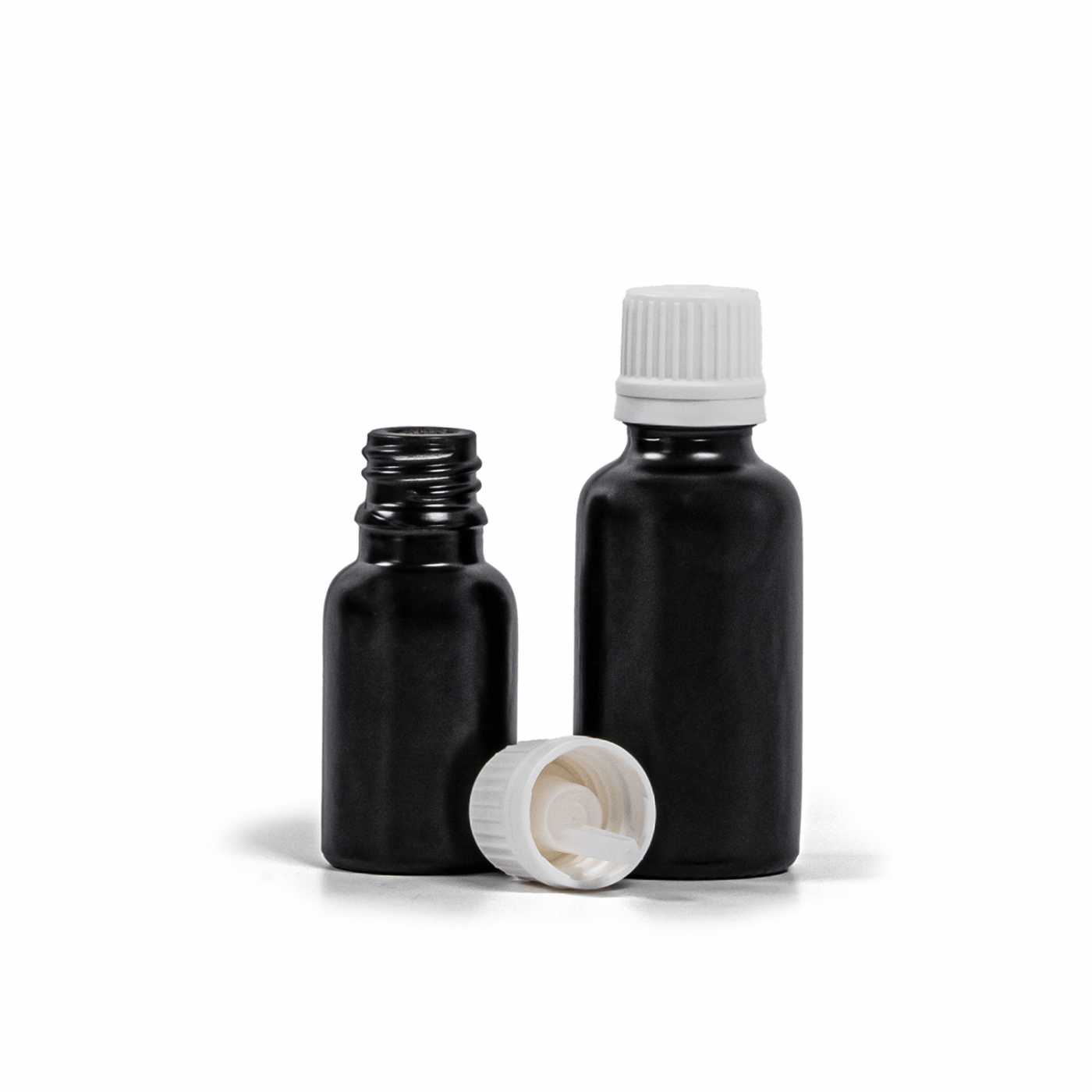 Die Glasflasche, das so genannte Fläschchen, ist aus dickem Glas in schwarzer, matter Ausführung gefertigt. Sie dient zur Aufbewahrung von Flüssigkeiten, die sie dank ihrer Farbe wirksam vor Licht schützt.