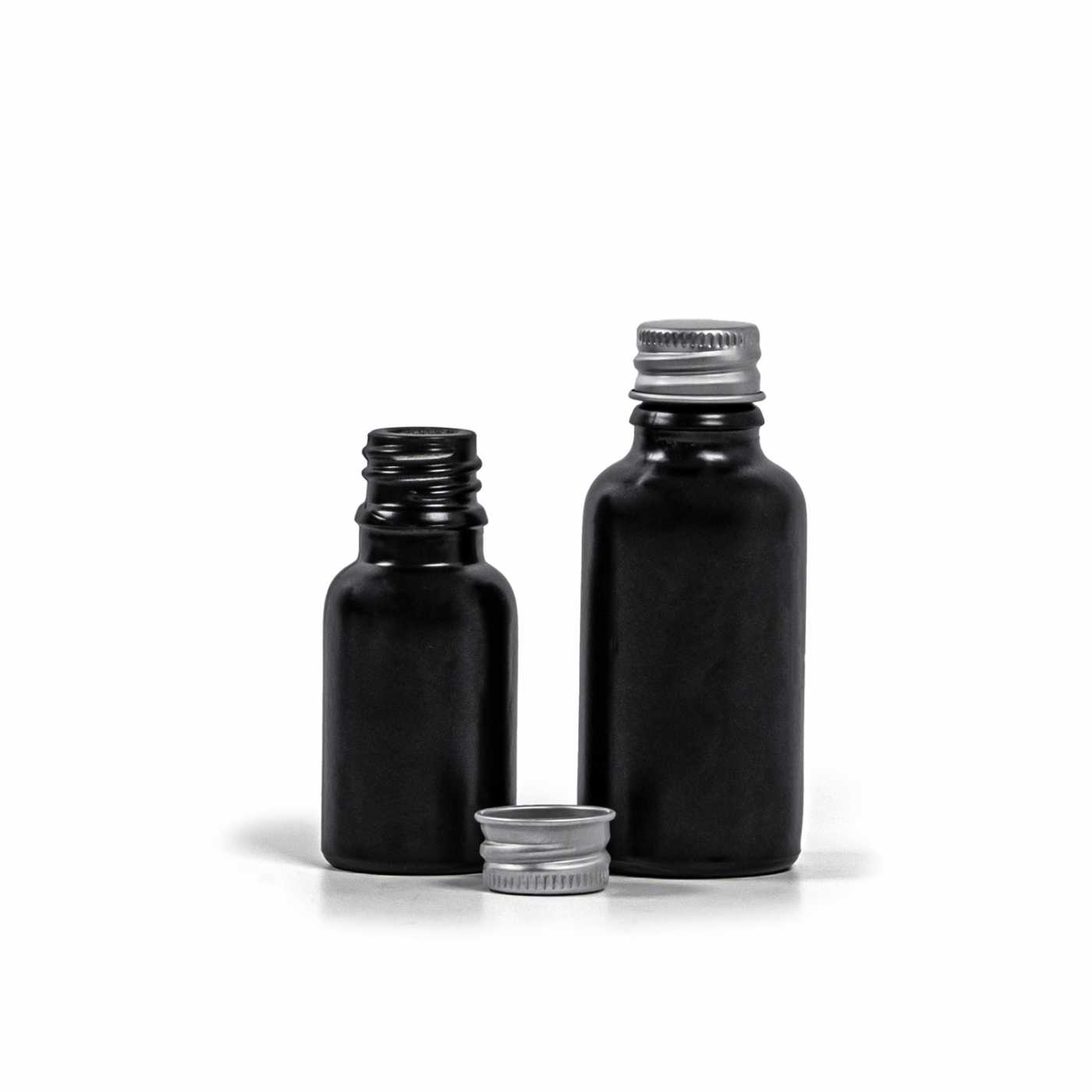 Die Glasflasche, das so genannte Fläschchen, ist aus dickem Glas in schwarzer, matter Ausführung gefertigt. Sie dient zur Aufbewahrung von Flüssigkeiten, die sie dank ihrer Farbe wirksam vor Licht schützt.