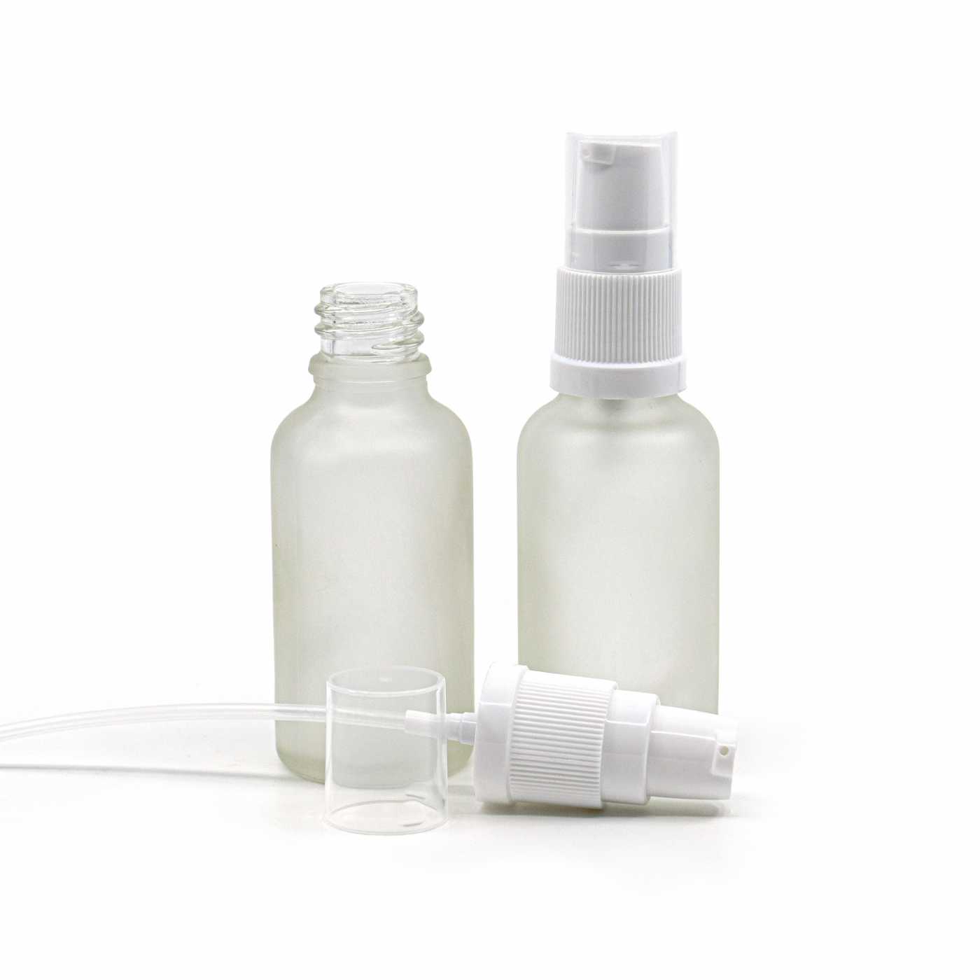 Milchig transparente Glasflasche mit weißem Dispenser, 30 ml