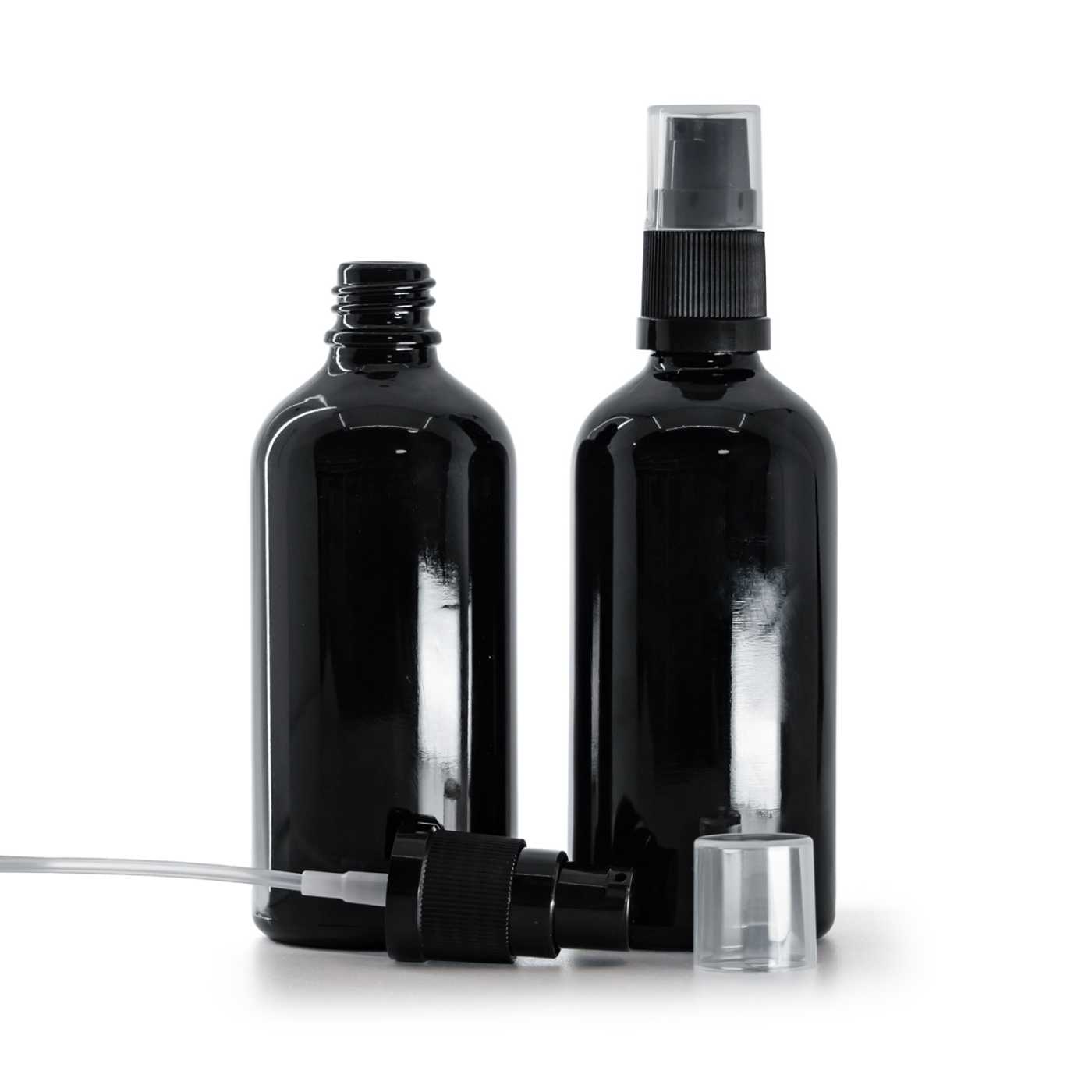 Schwarz glänzende Glasflasche, Lotion-Pumpe, 100 ml