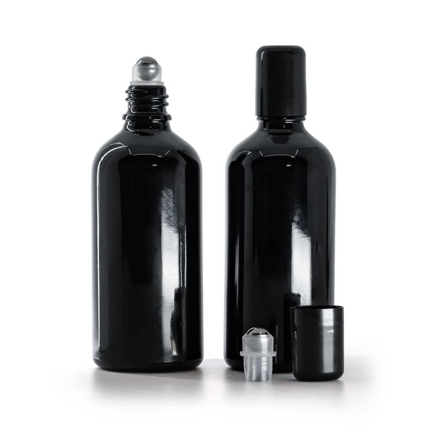 Schwarz glänzende Glasflasche mit Roll-On, 100 ml