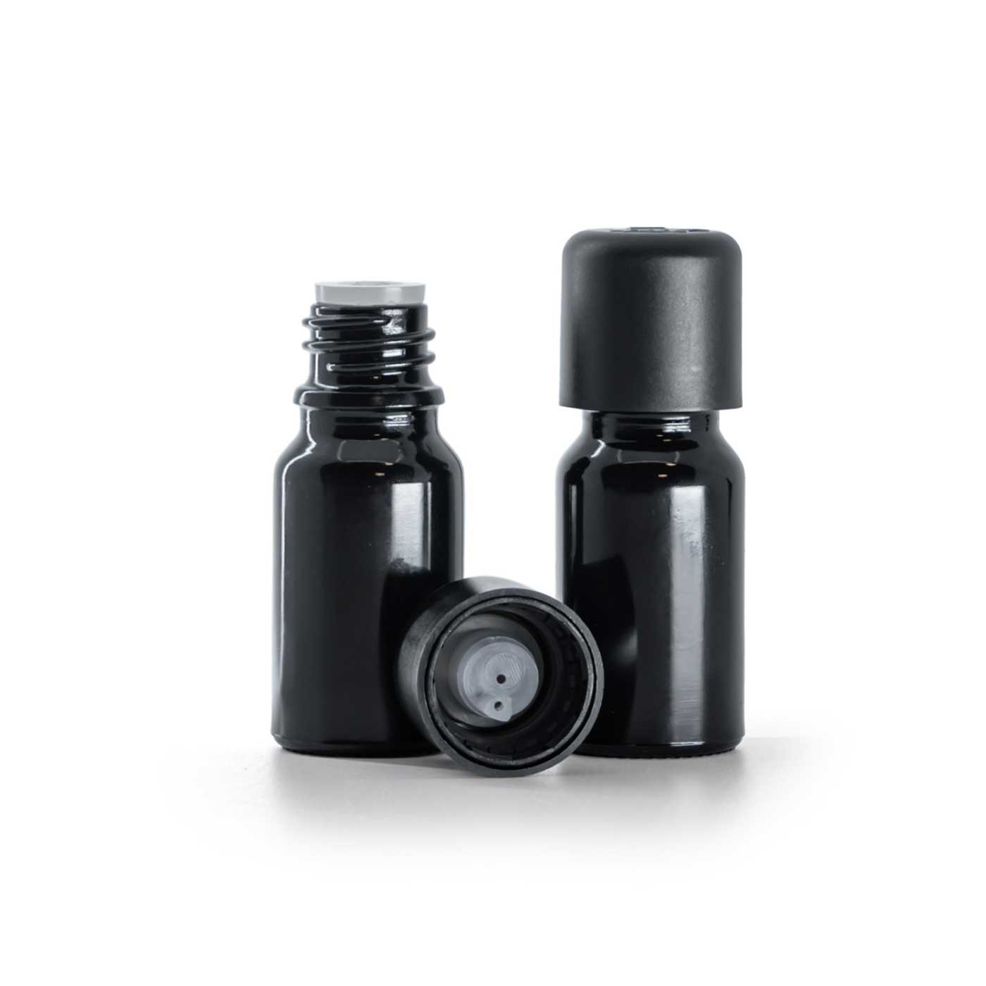 Glasflasche, schwarz glänzend, schwarzer Deckel mit Sicherheitsverschluss ist eine professionelle Verpackung für flüssige Formulierungen, bei denen Materialstab... read more