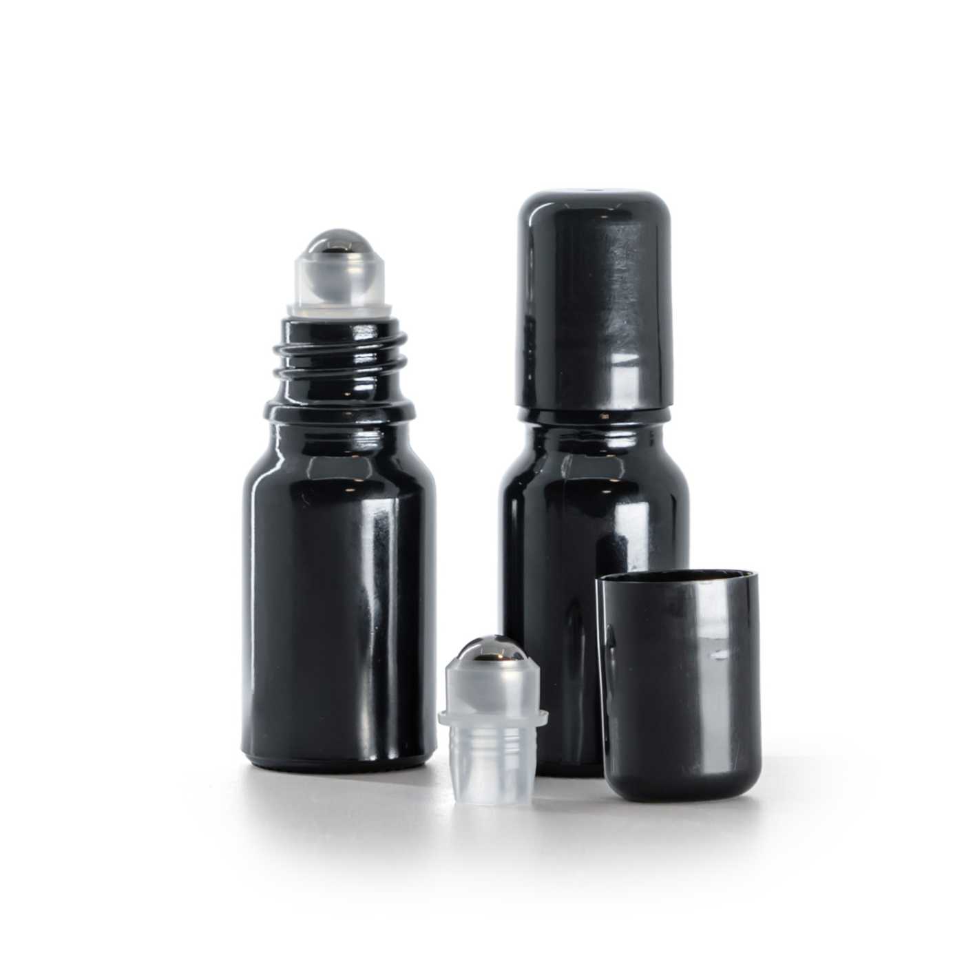 Schwarz glänzendes Glasfläschchen mit Roll-On, 10 ml