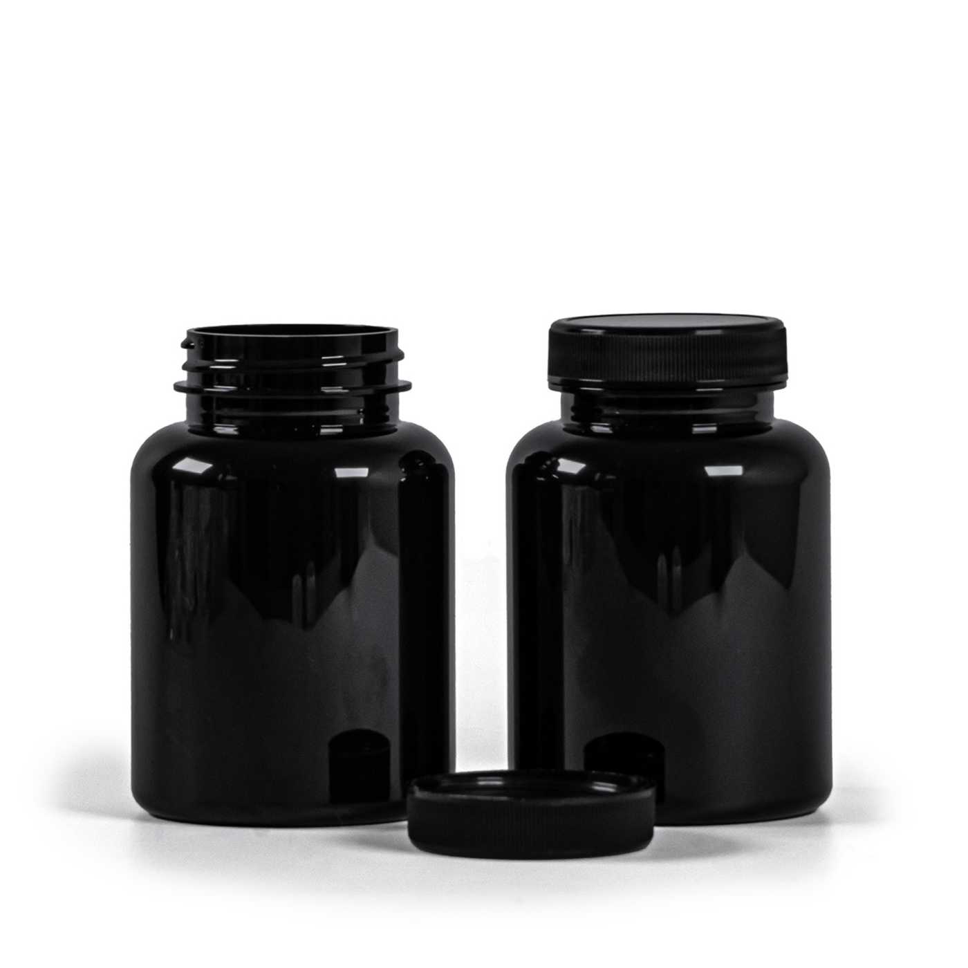 Schwarze Kunststoffdose für Tabletten mit schwarzem Deckel 200 ml