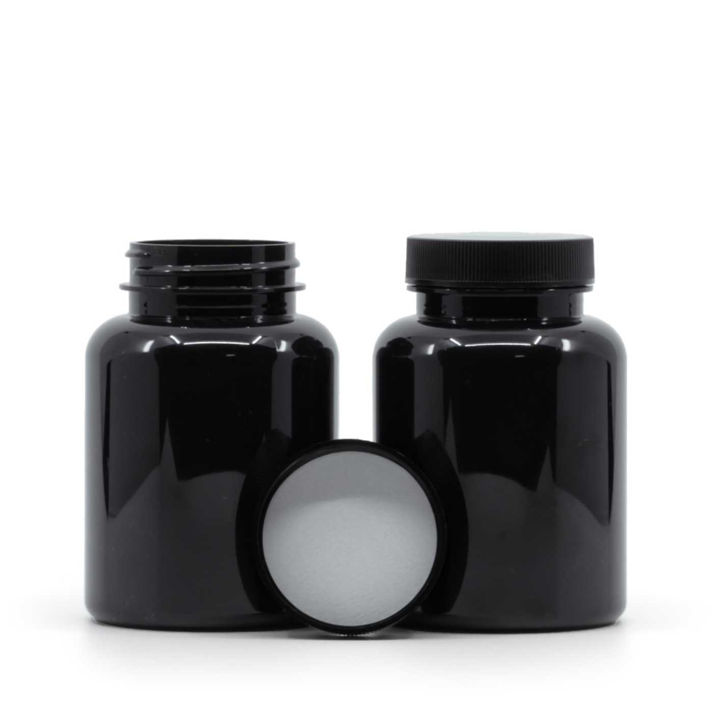 Schwarzes Kunststoff-Pillenglas, schwarzer Deckel, induktionsgeeignet, 200 ml