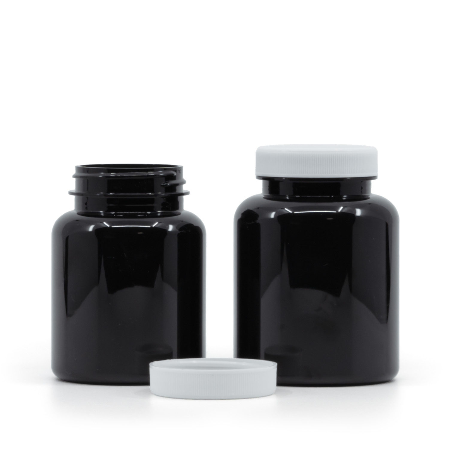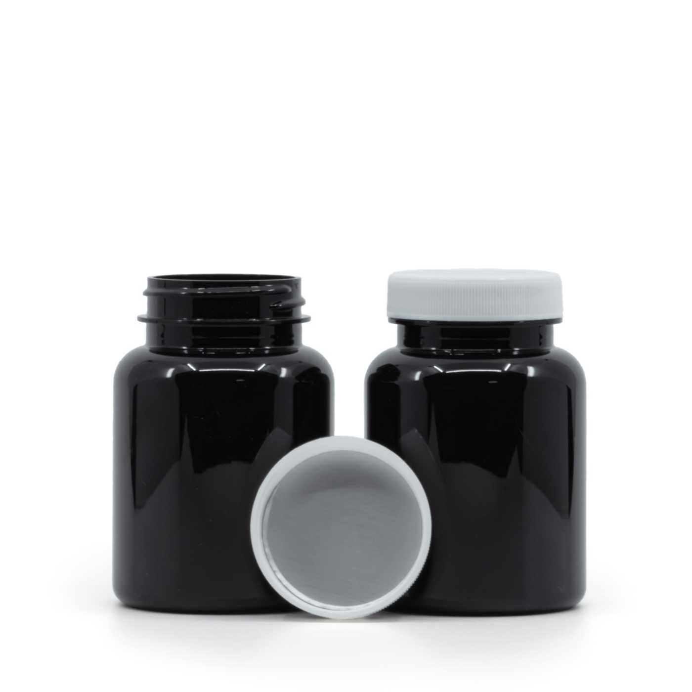 Schwarzes Kunststoff-Pillenglas, weißer Deckel, induktionsgeeignet, 150 ml