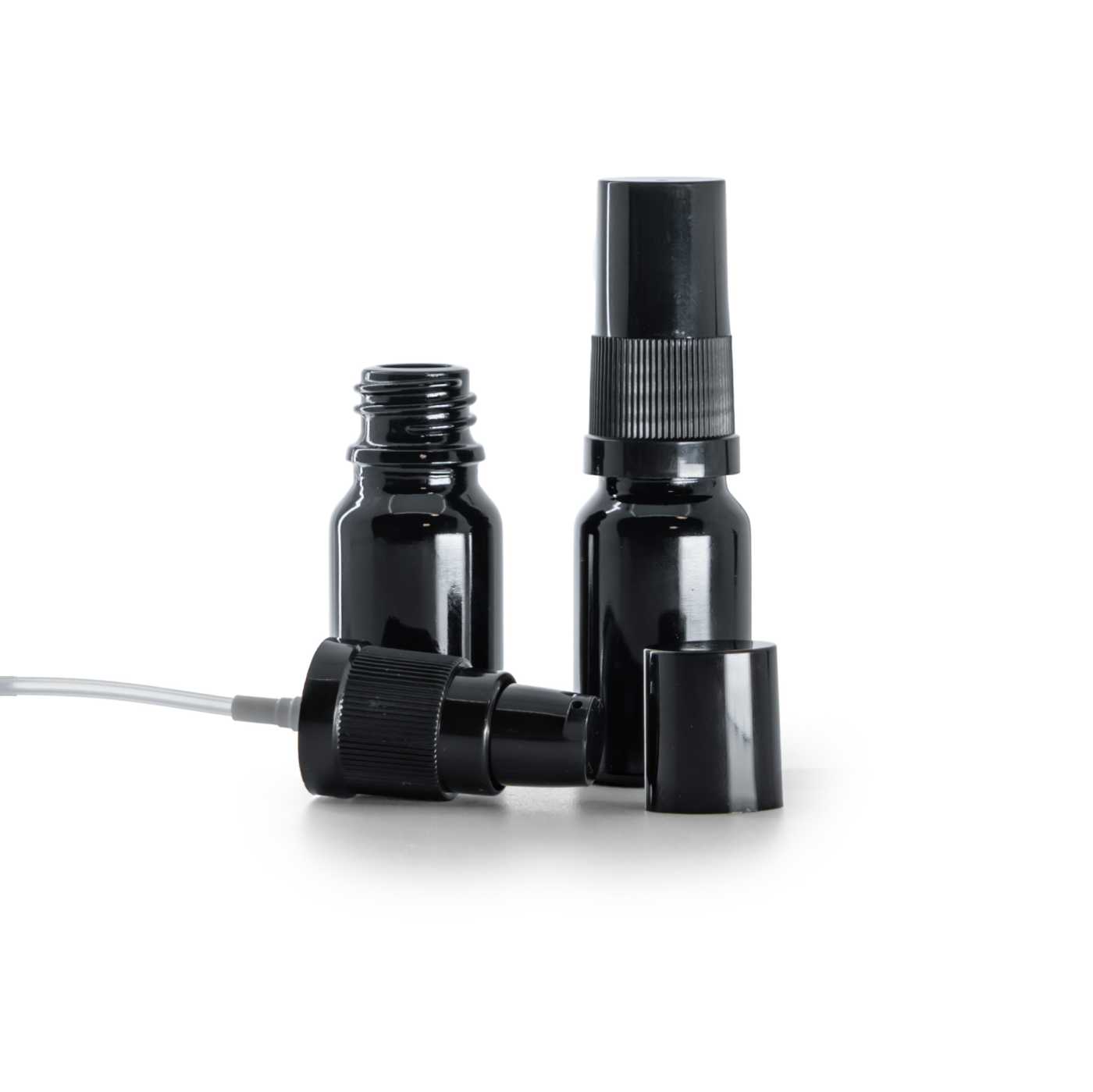Schwarzglänzende Glasflasche, Lotionpumpe mit schwarzer Kappe, 10 ml