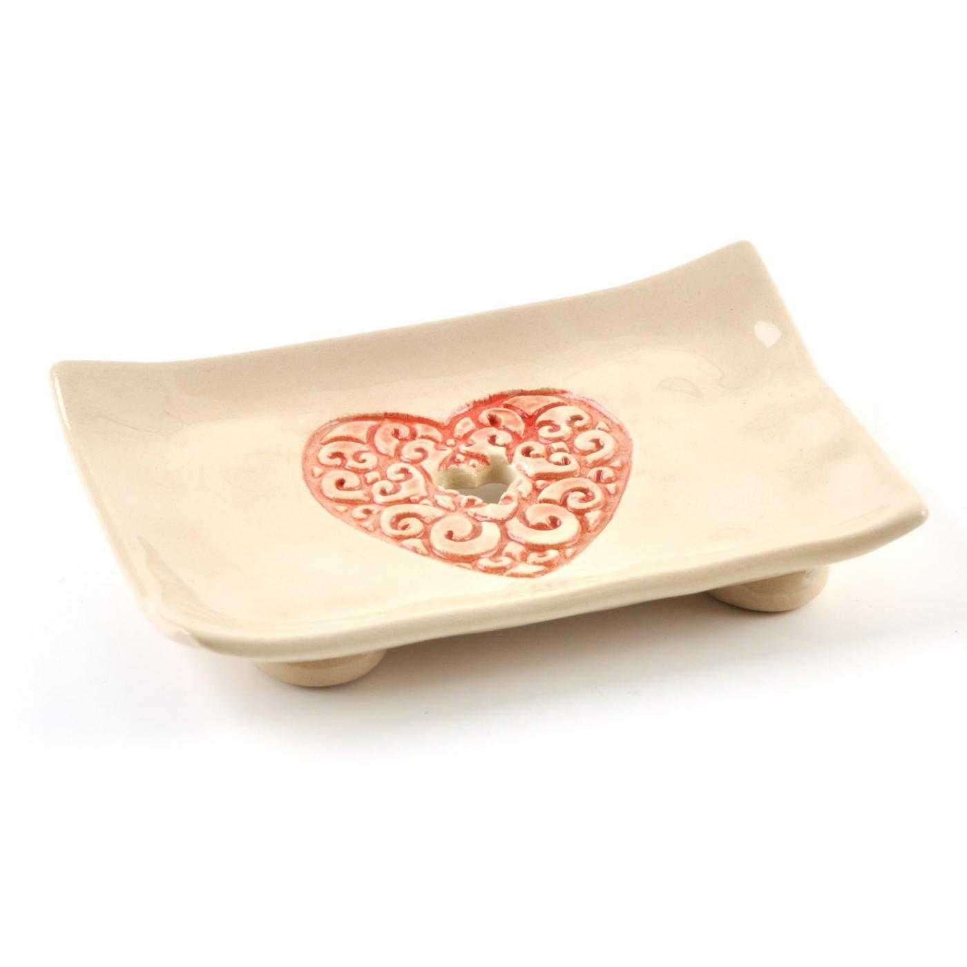 Die Seife in der Seifenschale wird sehr glücklich sein, die Seifenschale hat in der Mitte ein herzförmiges Loch, durch das überschüssiges Wasser abläuft, so dass es die Seife nicht aufweicht.