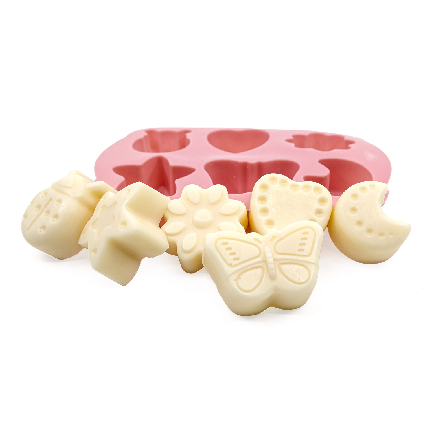 Silikonformen sind sehr flexibel und können zum Gießen einer Vielzahl von Substanzen verwendet werden , darunter Seifen, Wachse und Seifengrundlagen.