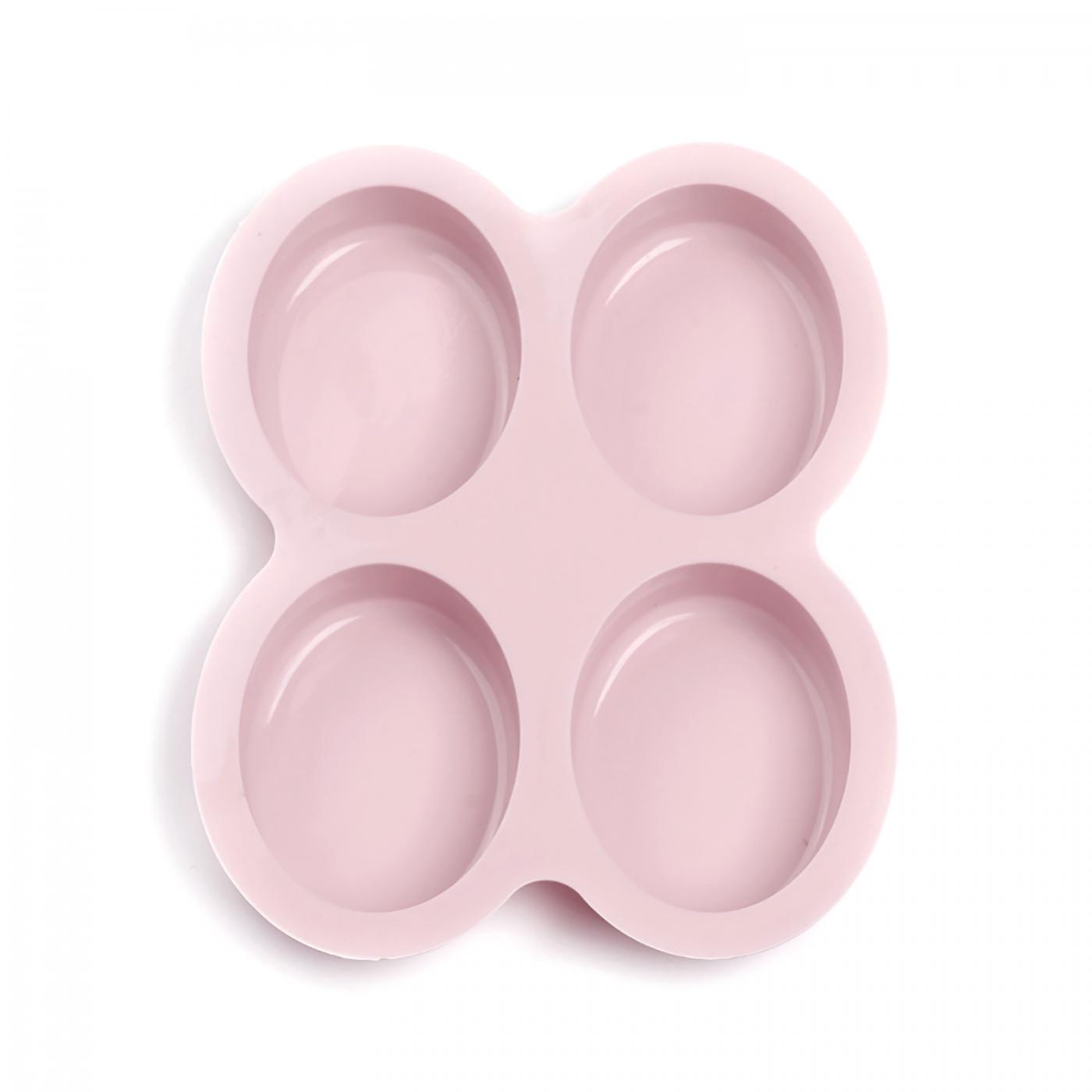 Silikonformen sind sehr flexibel und können zum Gießen einer Vielzahl von Substanzen verwendet werden , darunter Seifen, Wachse und Seifengrundlagen. Gießen Sie die flüssige, erwärmte Masse in die Form, lassen Sie sie abkühlen und nehmen Sie sie dann vorsichtig heraus.Bei der Herstellung von Seifen im Kaltverfahren empfehlen wir, die Form in den Gefrierschrank zu stellen, damit sich die Seife leichter aus der Form lösen lässt.Silikonformen sind temperaturbeständig von -40°C bis 230°C.Waschen Sie die Form vor dem ersten Gebrauch in warmem Wasser mit einer kleinen Menge Spülmittel und waschen Sie sie nach dem Gebrauch auf dieselbe Weise. Äußere Abmessungen der Form: 18,2 x 14,8 x 2,4 cmInnenmaße des Ovals: 7,6 x 5,75 cm