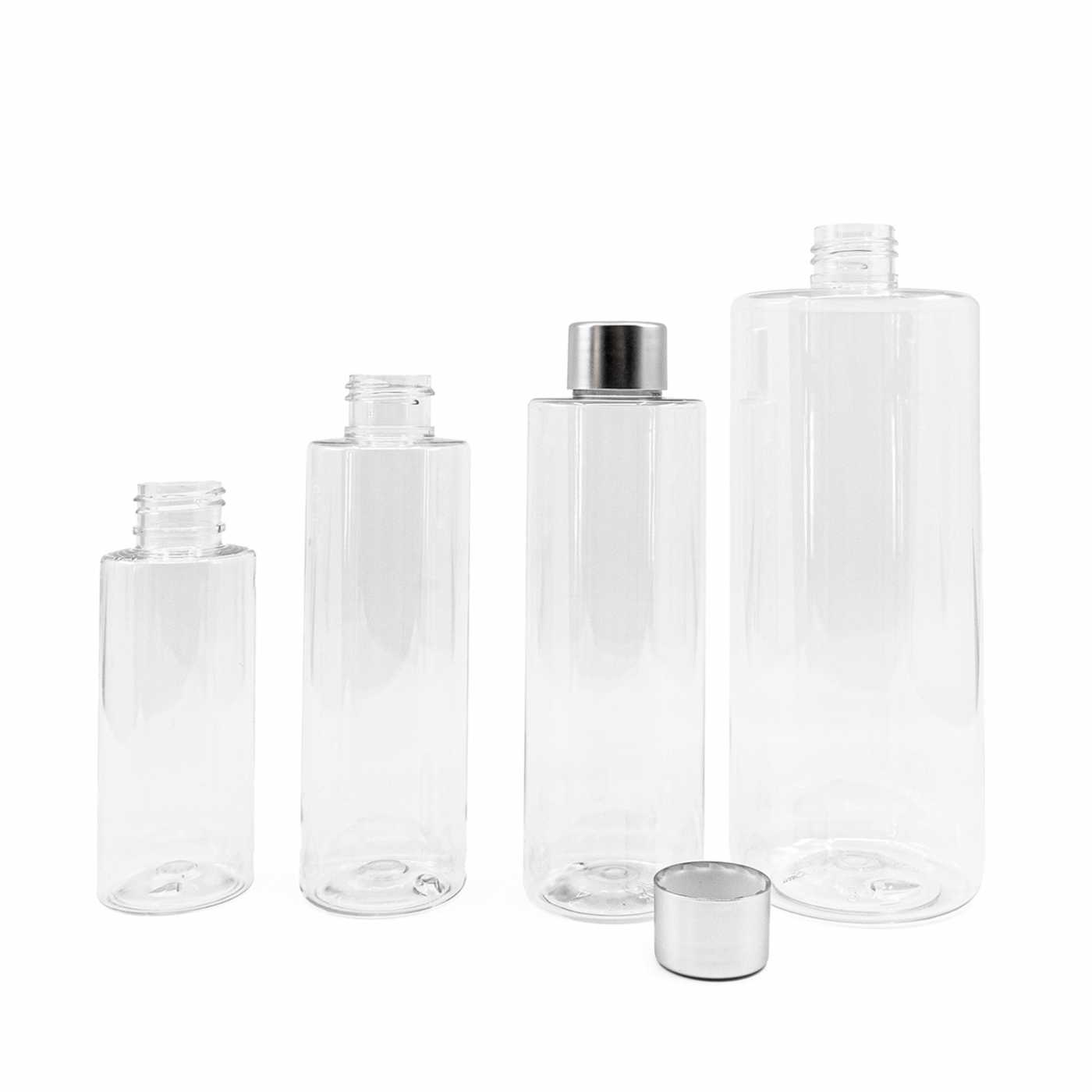Transparente Kunststoffflasche, 24/410, matter silberfarbener Kunststoffverschluss, 200 ml