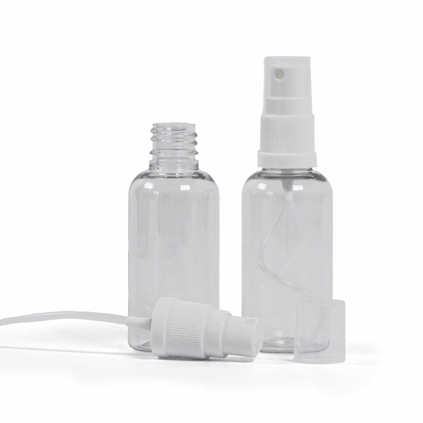 Transparente Kunststoffflasche mit weißem Sprühaufsatz 50 ml
