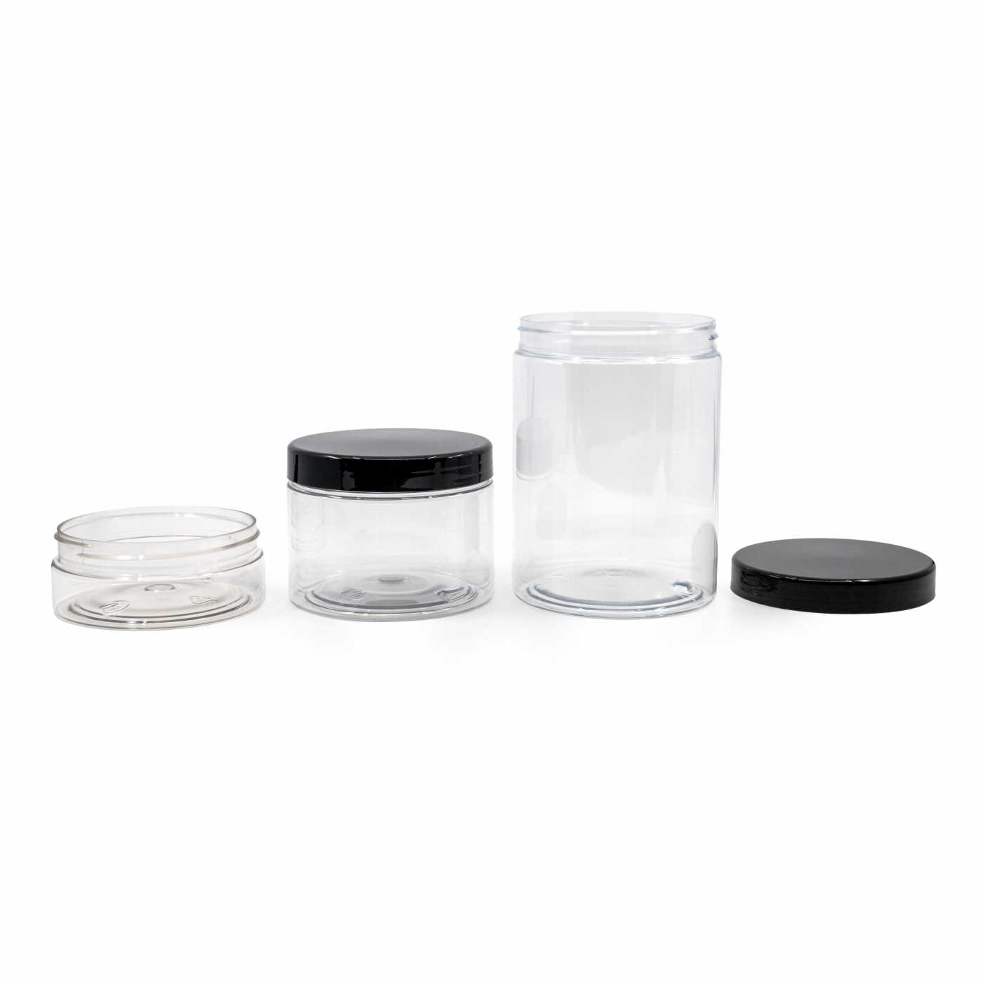 Transparentes Kunststoffgefäß, schwarzer Deckel, 1 l