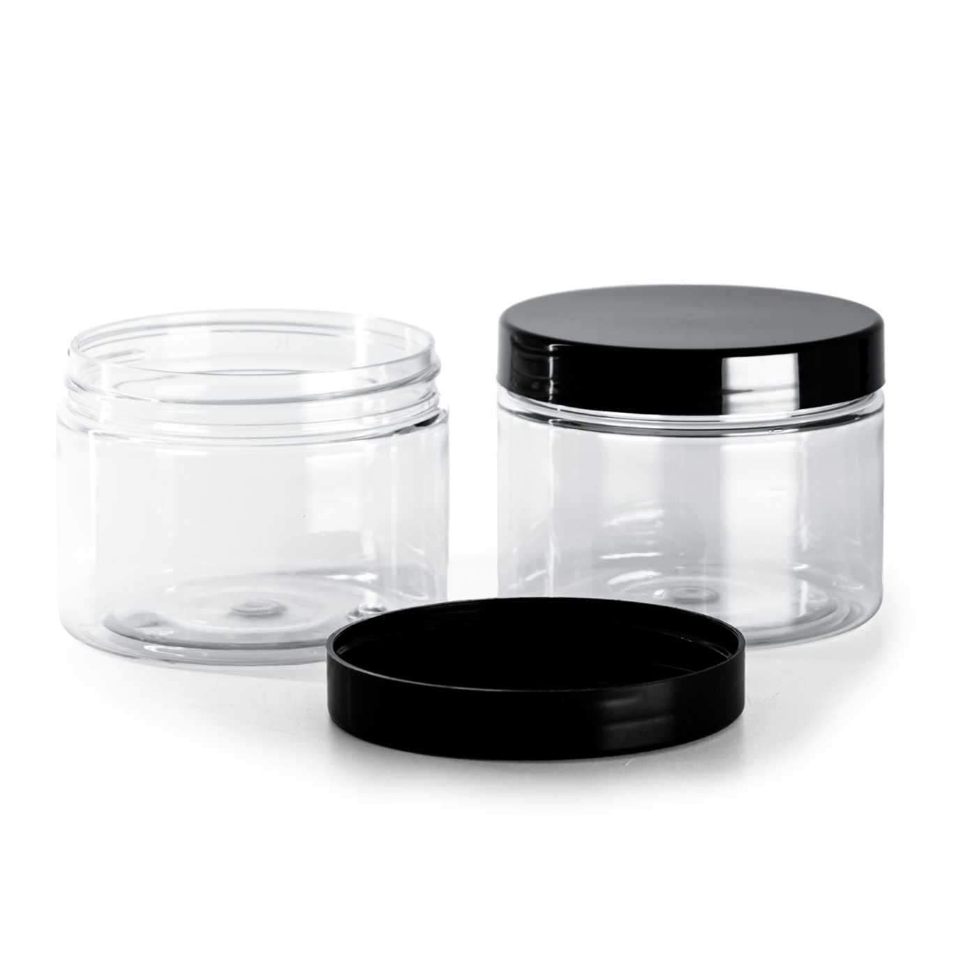 Transparentes Kunststoffgefäß, schwarzer Deckel 150 ml