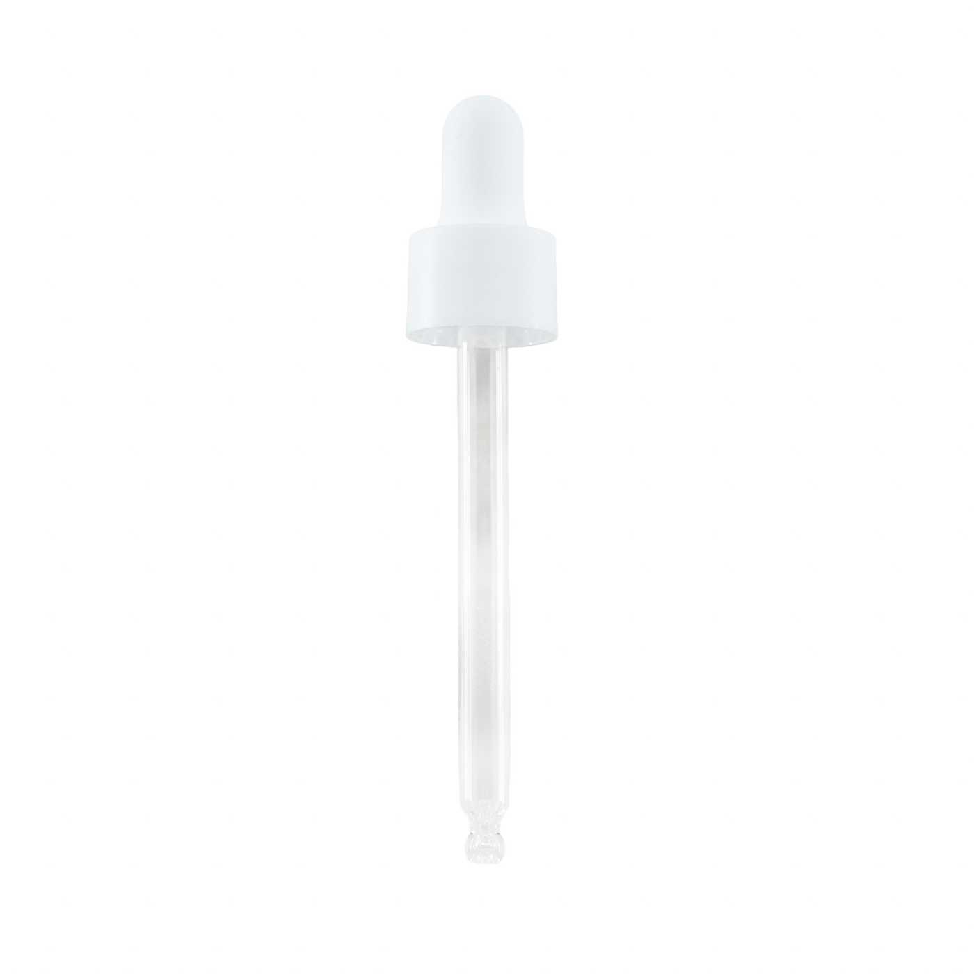 Weiß gefrosteter Kunststofftropfer, geeignet für Flaschen mit einem Halsdurchmesser von 18 mm und einem Volumen von 30 ml.Länge des Glasröhrchens: 71 mm