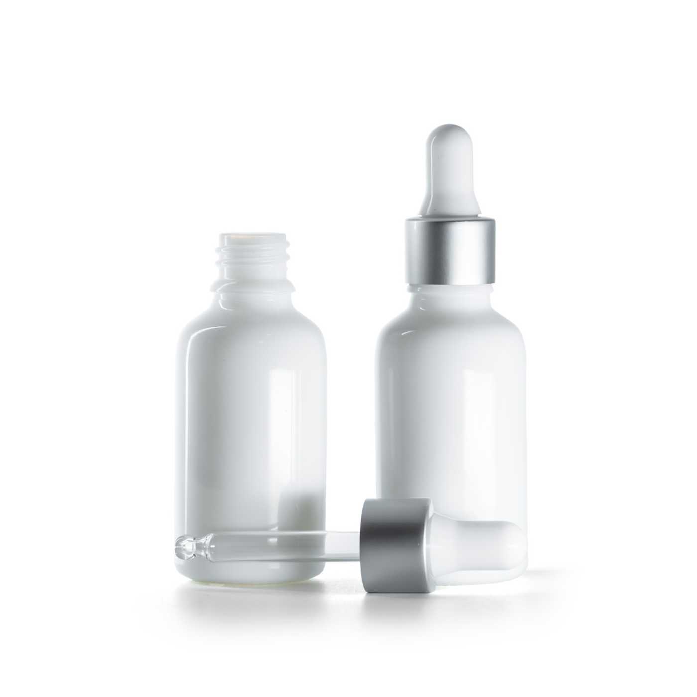 Die Glasflasche mit weißer Oberfläche und mattsilberner Pipette ist eine elegante und professionelle Verpackung, die sich ideal zum Dosieren konzentrierter Flüssigkeiten tropfenweise eignet. Die Kombination aus hochwertigem Glas und einer funktionellen Pipette gewährleistet eine präzise, hygienische und wiederholt gleichbleibende Dosierung, was sie prädestiniert für das Abfüllen von Seren, Ölen, Extrakten und weiteren flüssigen Formulierungen. Die opake weiße Ausführung hilft, den empfindlichen Inhalt vor Licht zu schützen und unterstützt die Stabilität der aktiven Inhaltsstoffe während der Lagerung.
