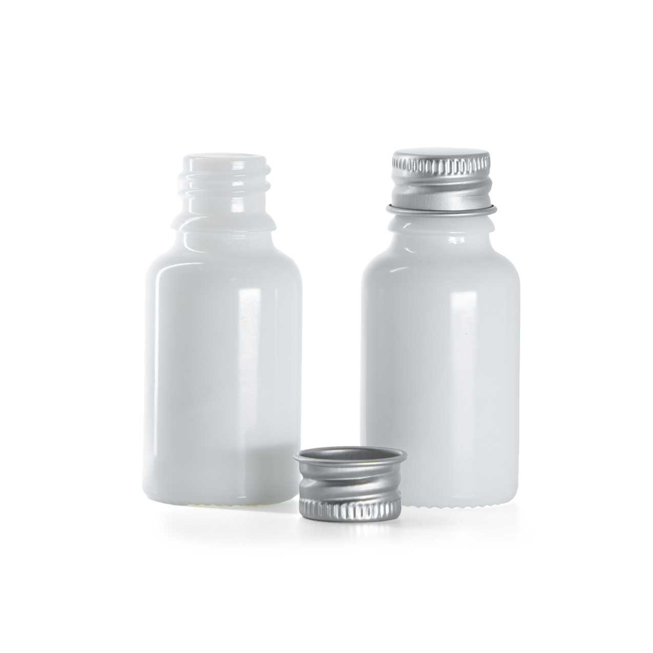 Weiße Glasflasche mit Aluminiumschraubverschluss, 15 ml