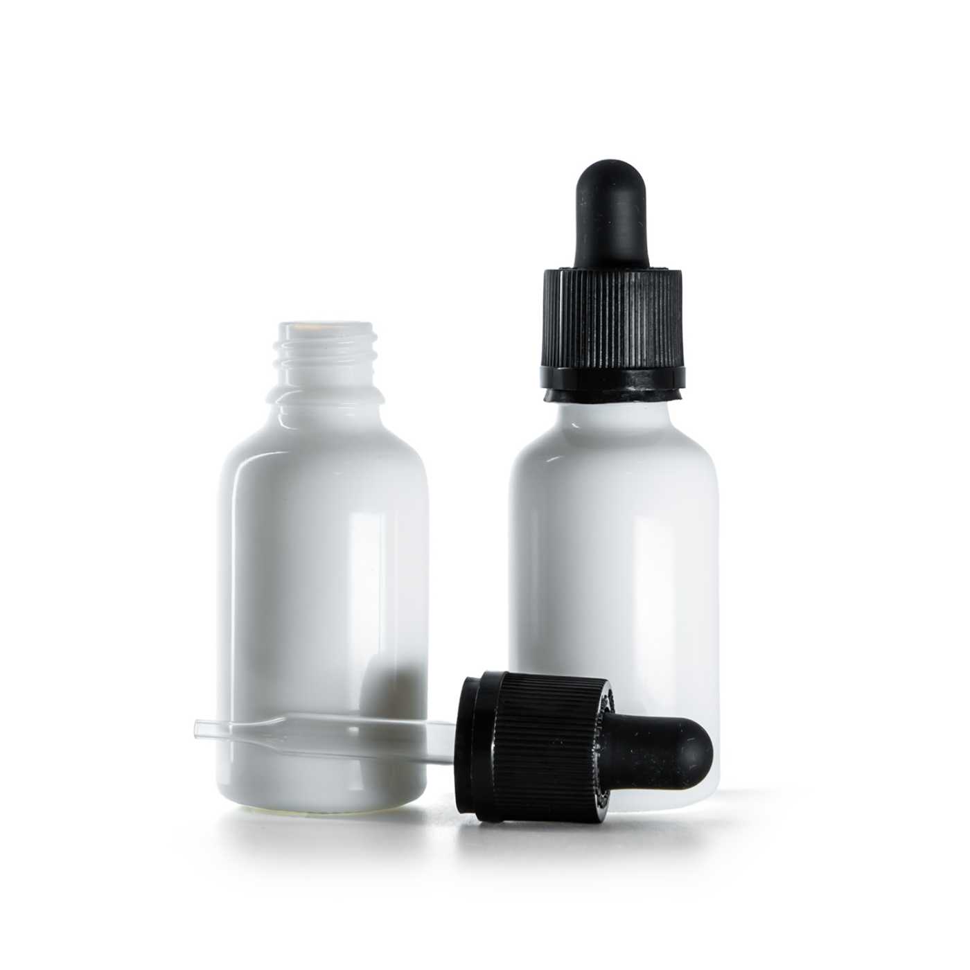Weiße Glasflasche mit Originalitätsverschluss-Pipette, 30 ml